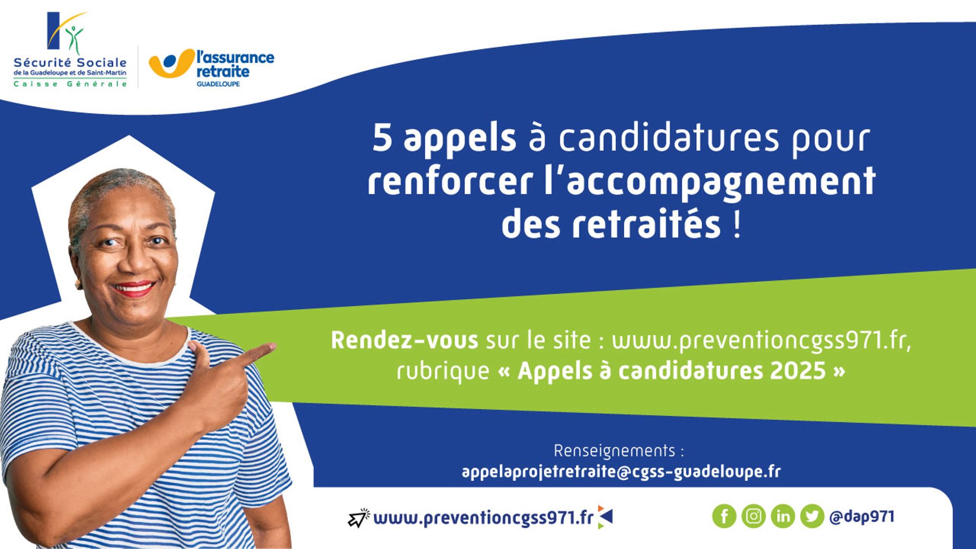 Appel à candidatures 2025 - "Renforcement de l'accompagnement des retraités" - Caisse Générale de Sécurité Sociale (CGSS)/ Assurance Retraite de Guadeloupe et de Saint-Martin - Date limite: 31/10/2025
