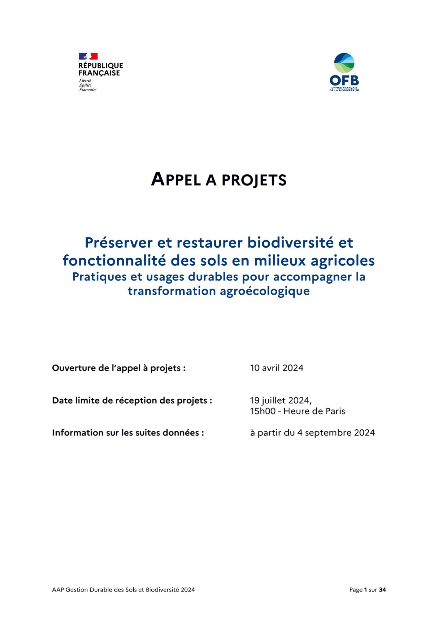 Cet appel à projets vise à soutenir des projets de transfert de connaissances, d’études préalables, de recherche appliquée, dont de recherche-action en appui à la gestion durable des sols et à leur évaluation permettant de démontrer que les pratiques agroécologiques ont un effet bénéfique sur la biodiversité et la fonctionnalité des sols.
