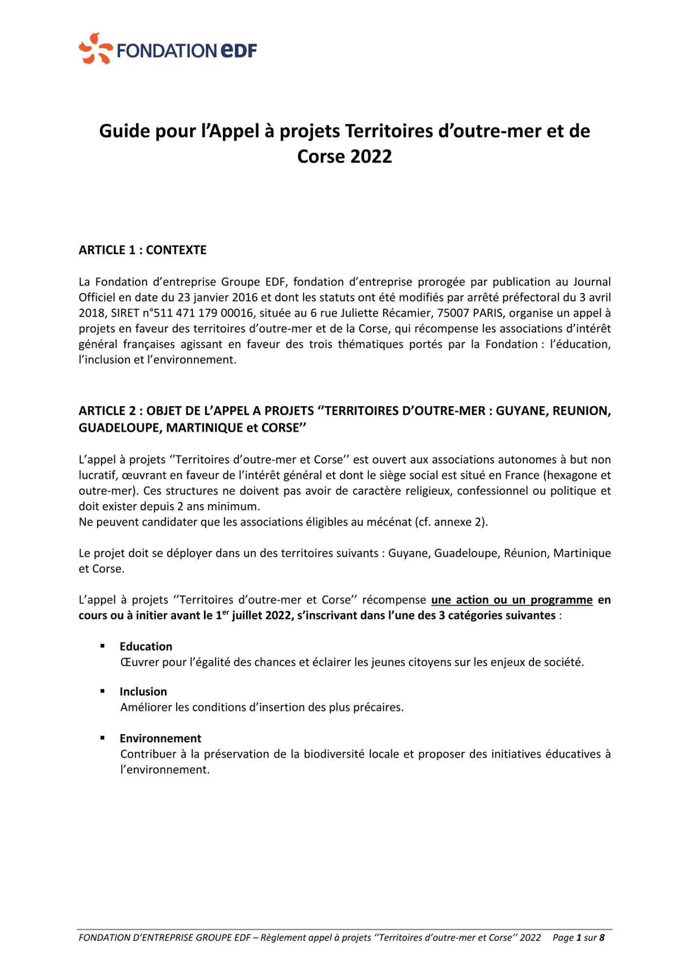 La Fondation EDF lance un appel à projets à Saint-Martin, Saint-Barthélemy, en Guadeloupe, en Martinique, en Guyane, à La Réunion et en Corse. « Il récompensera les projets ou expérimentations innovants dans les domaines d’intervention de la Fondation groupe EDF : l’environnement, l’éducation et l’inclusion ».