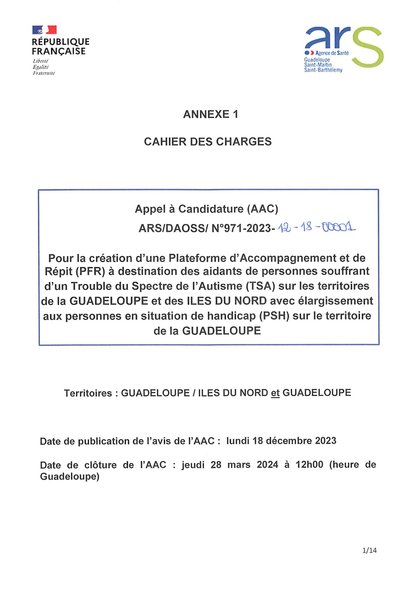 AAC 2023 - Création d'une PFR TSA/PSH - GUADELOUPE - IDN/GUADELOUPE