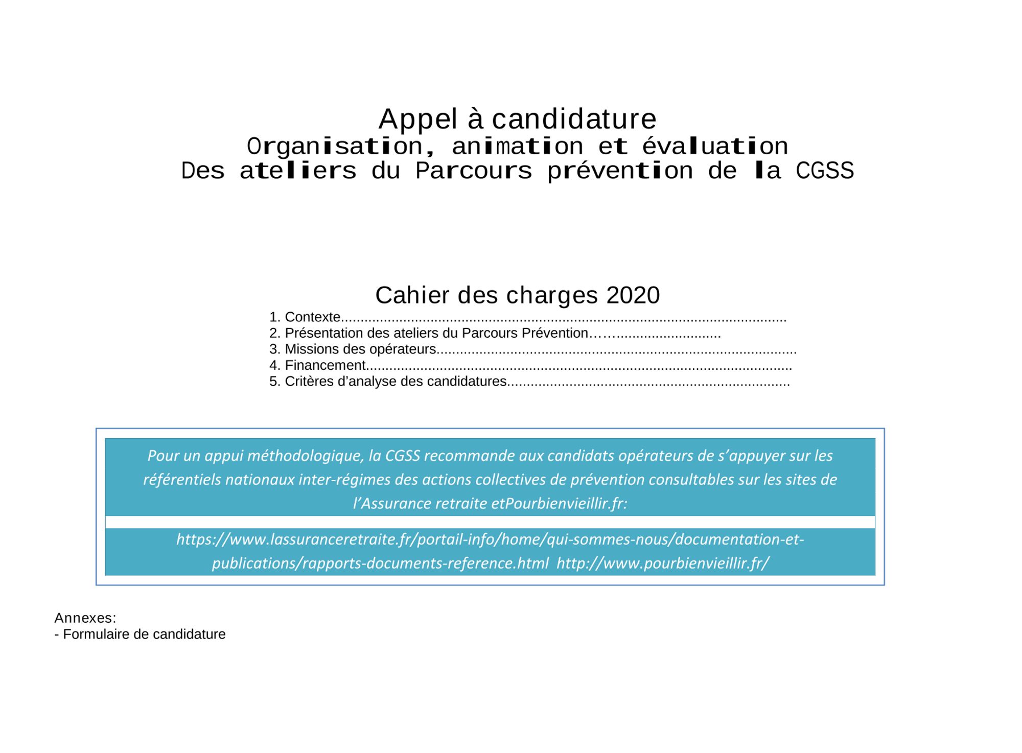 - le Cahier des charges - Organisation animation et evaluation des ateliers du parcours prevention de la CGSS et
