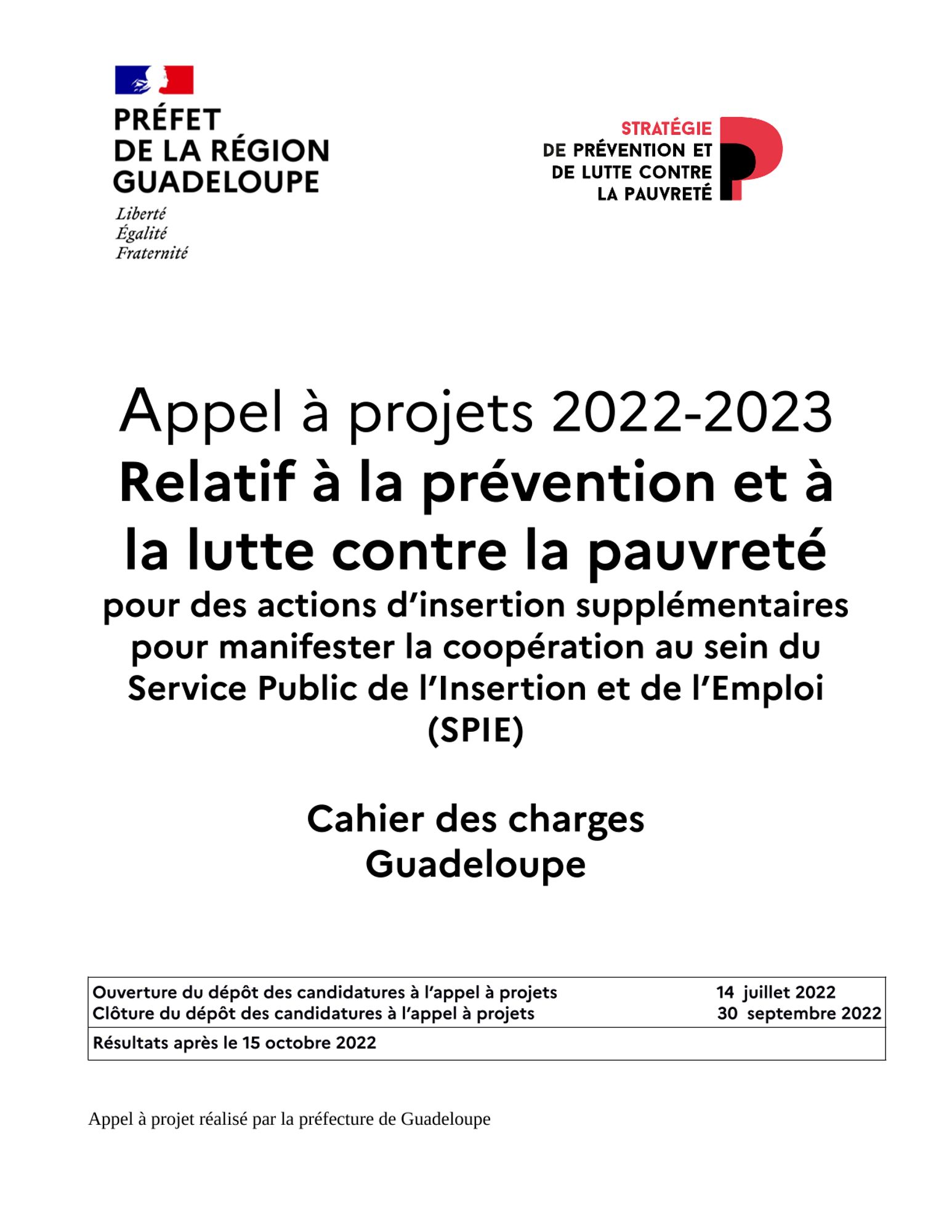 Cet appel à projets s’adresse aux associations, aux structures publiques ou de l’économie sociale et solidaire, qui mettent en œuvre des actions en Guadeloupe visant à prévenir et à lutter contre la pauvreté. . Pour plus de précision cf. cahier des charges.