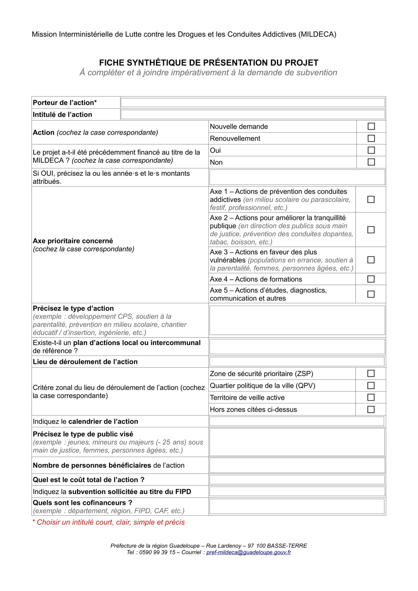 Pour plus d'indications et téléchargement des documents consulter le site Internet de la Préfecture de région Guadeloupe