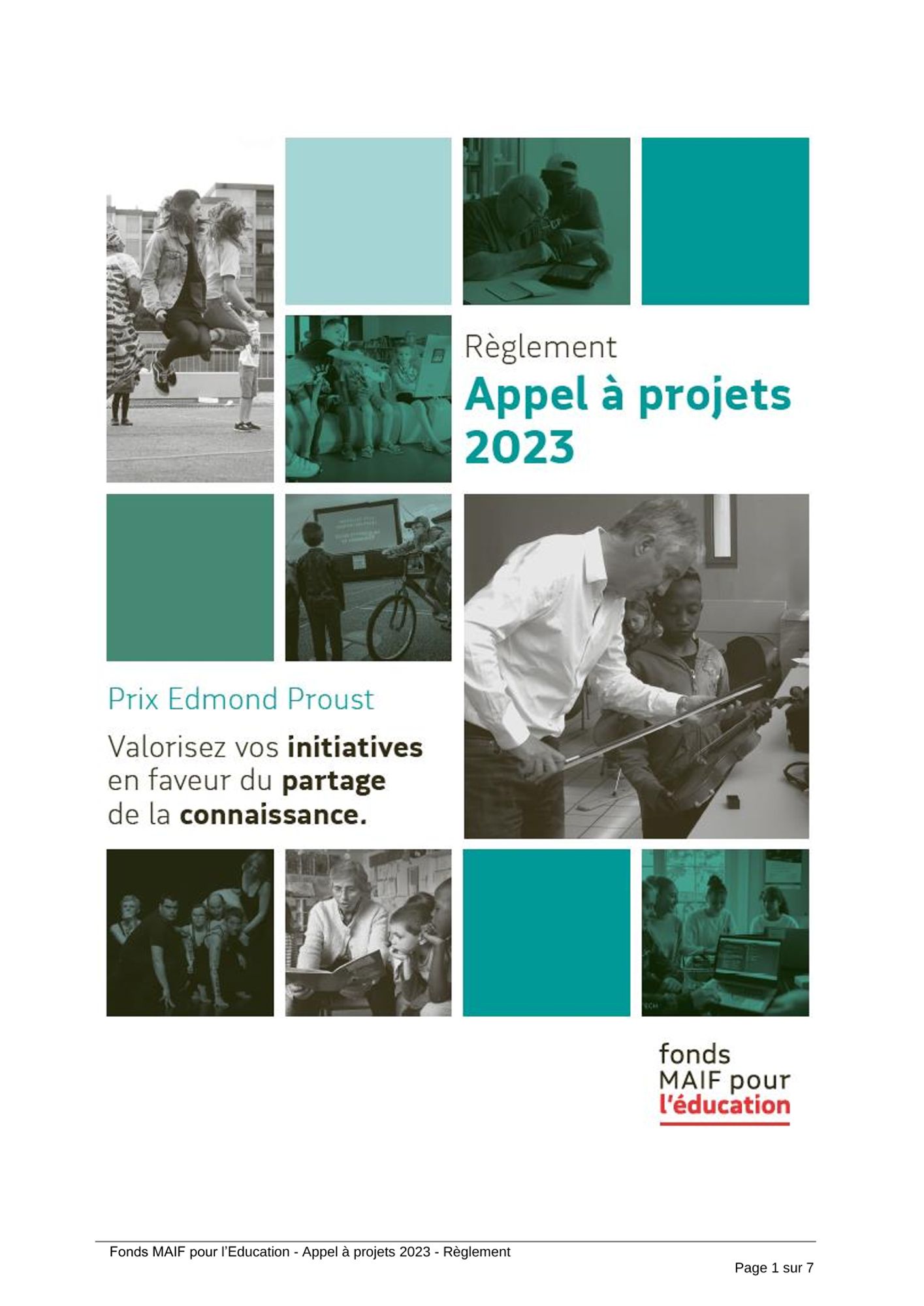 Grâce à cet appel à projets, le Fonds MAIF pour l’Éducation souhaite récompenser des actions innovantes et originales favorisant le partage de la connaissance. Ces actions, d’intérêt général à vocation éducative, concernent prioritairement un public défavorisé du fait, par exemple, d’un handicap ou d’une situation sociale difficile.