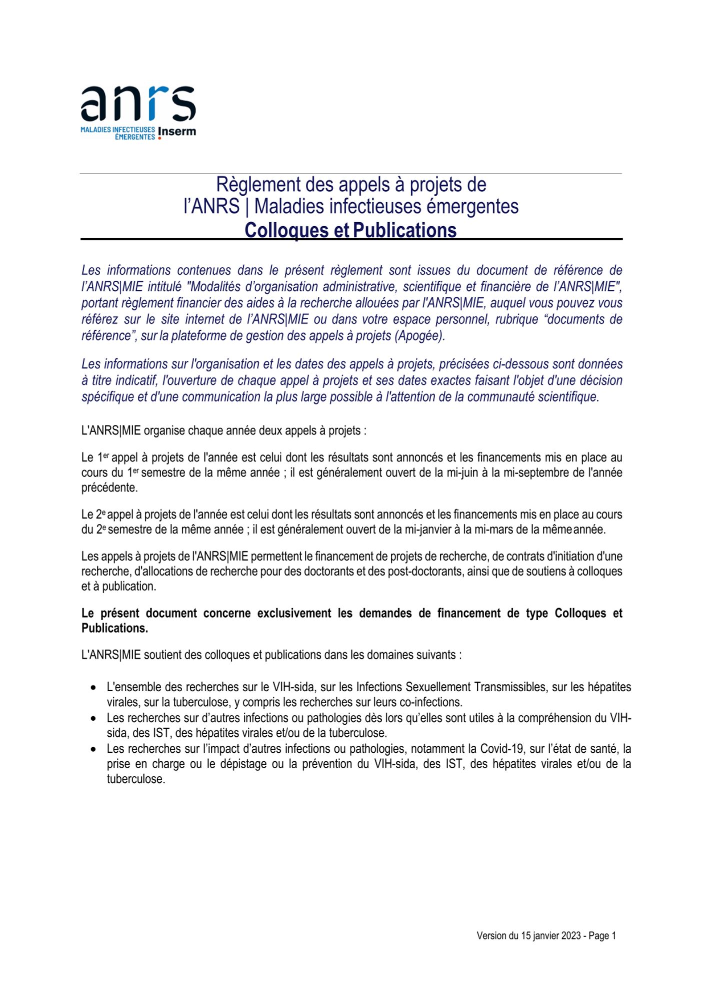 - aux promoteurs des colloques et publications sur l'ensemble des recherches (suivantes): sur le VIH-sida, les IST, hépatites virales, la tuberculose et les recherches sur les co-infections; sur d'autres infections ou pathologies utiles à la compréhension du VIH-Sida, les IST, les hépatites virales et/ou de la tuberculose; sur l'impact d'autres infections ou pathologies comme la Covid-19, sur l'état de santé, la prise en charge ou le dépistage ou la prévention du VIH-sida, les IST, les hépatites virales et/ou de la tuberculose.
