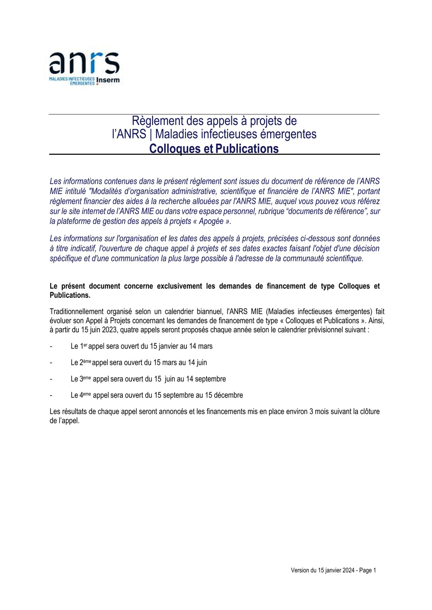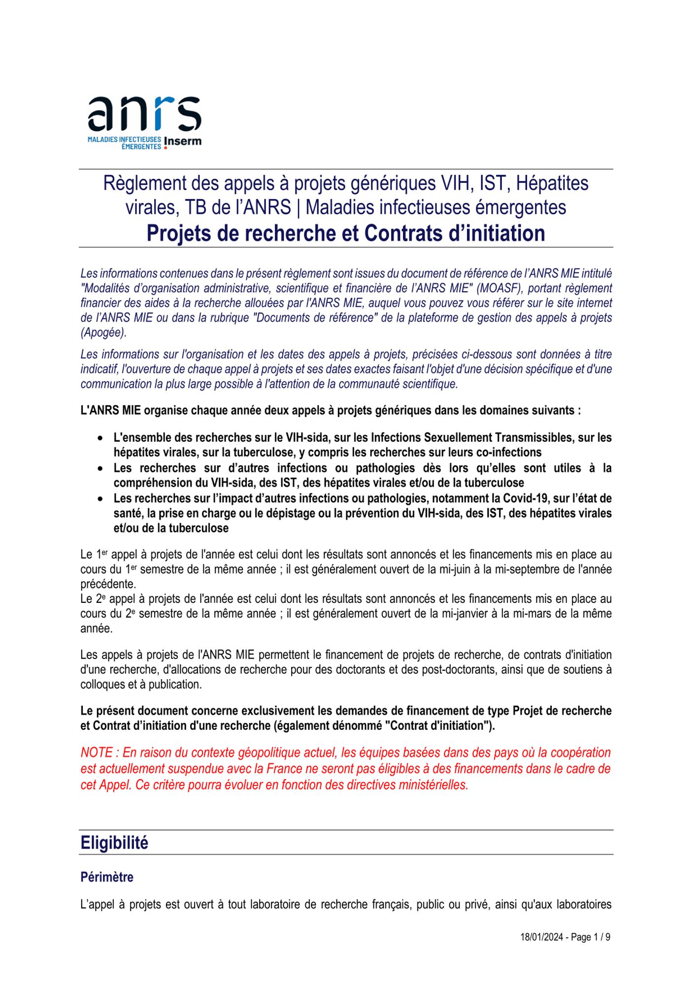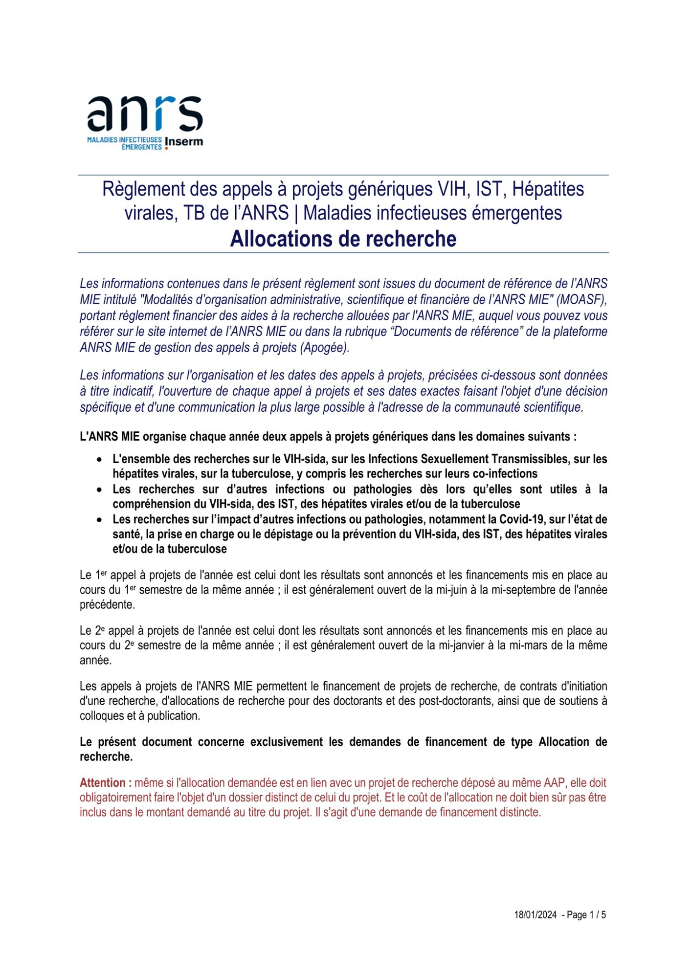 Prendre connaissance des détails dans le contenu des règlements de chaque appel à projets générique et consulter le site Internet de l'ANRS-MIE (Je soumets mon projet).