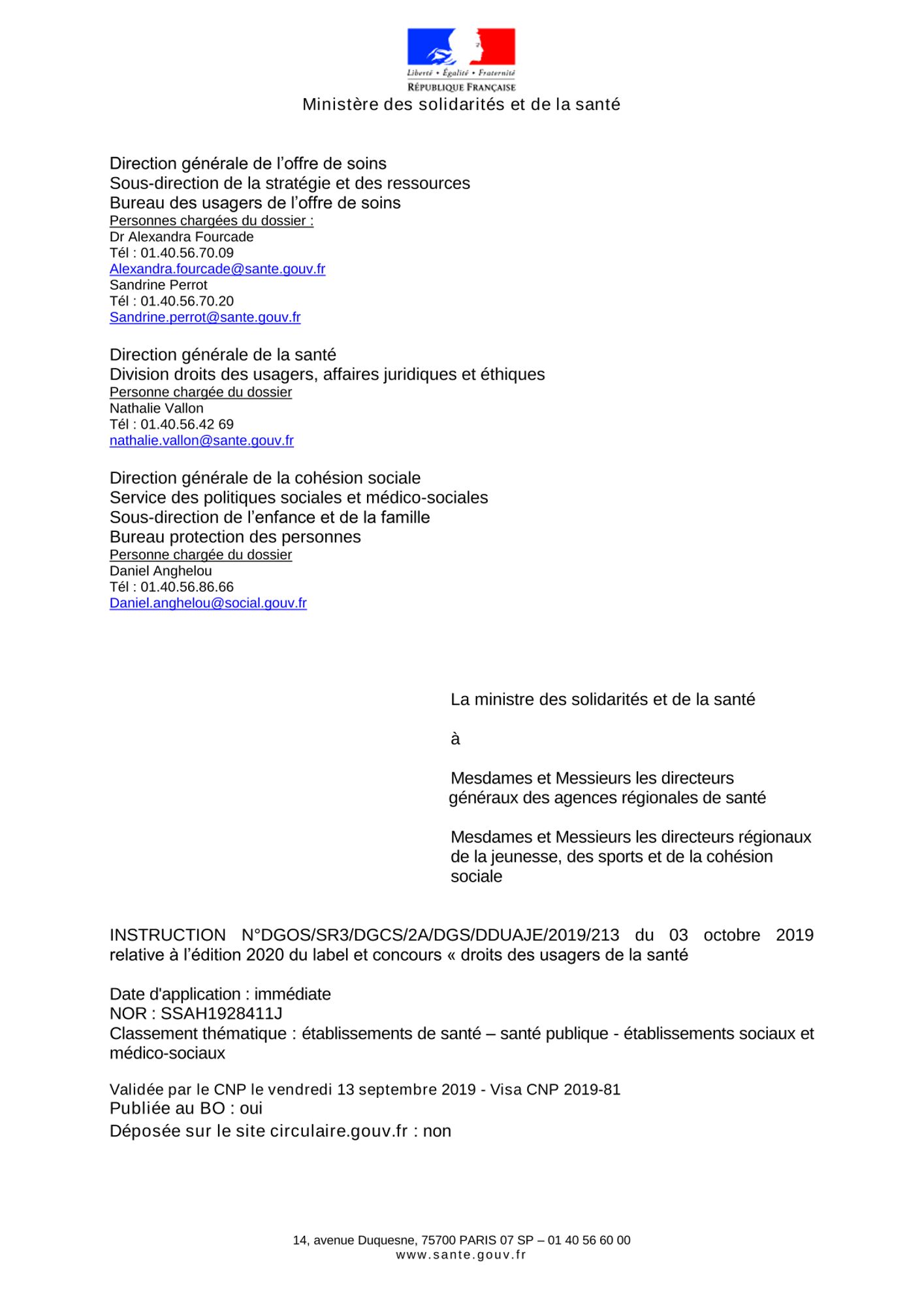 L’attribution du label « Droits des usagers de la santé » est confiée aux agences régionales de santé (ARS), après avis des commissions spécialisées droits des usagers (CSDU) des conférences régionales de santé et de l’autonomie (CRSA) et, en lien le cas échéant, avec les directions régionales de la jeunesse, des sports et de la cohésion sociale (DRJSCS).