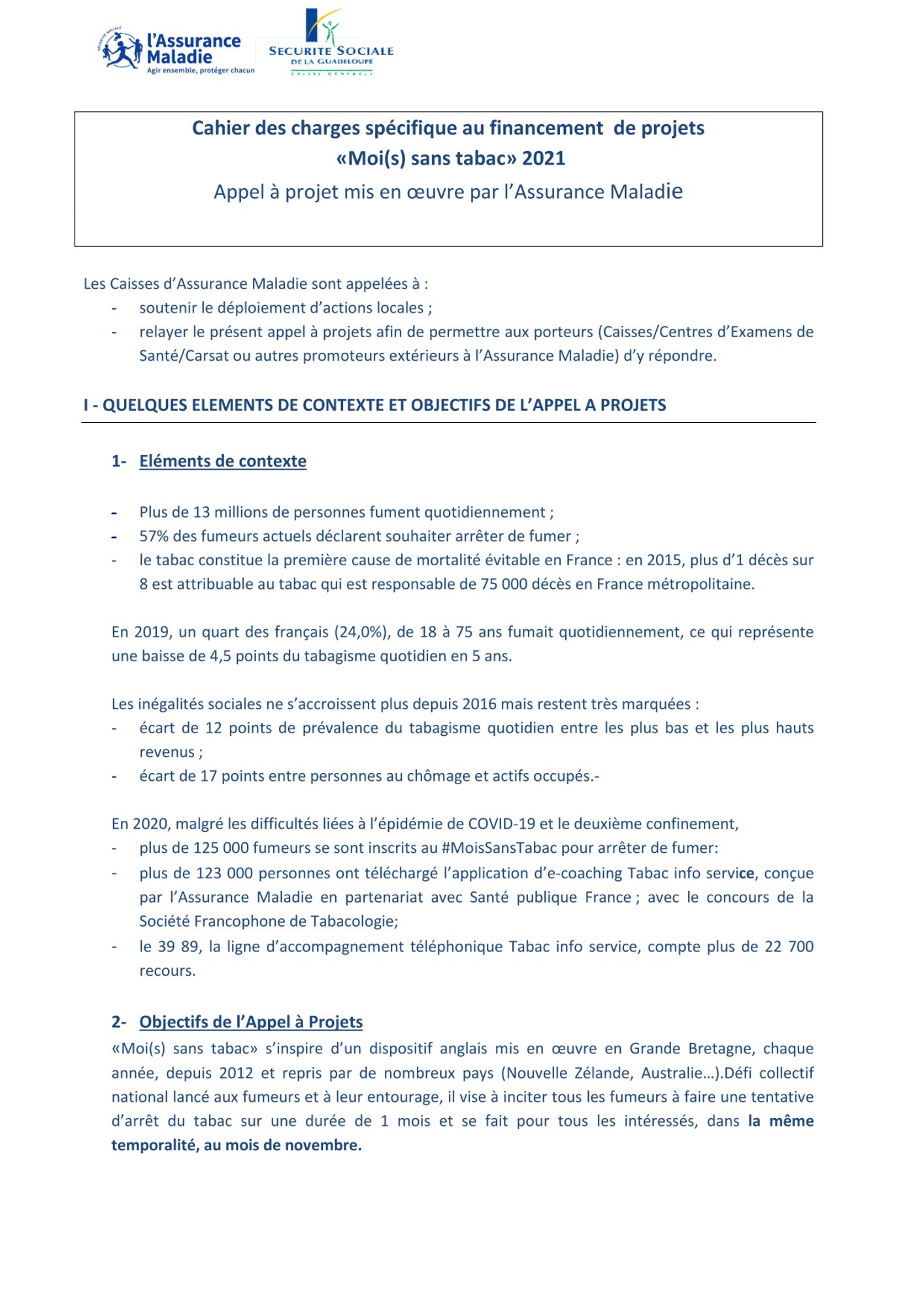 La Caisse Générale de Sécurité Sociale de Guadeloupe lance son appel à projet dans le cadre du Moi(s) sans tabac 2021 auprès de ses partenaires.