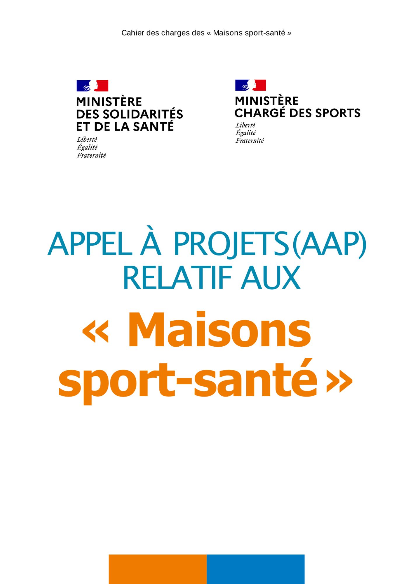 Le ministère chargé des Sports et le ministère des Solidarités et de la Santé ont publiés (le 05/04/2022) le cahier des charges du quatrième appel à projets pour la reconnaissance des Maisons Sport-Santé dans le cadre de la Stratégie Nationale Sport Santé 2019-2024.