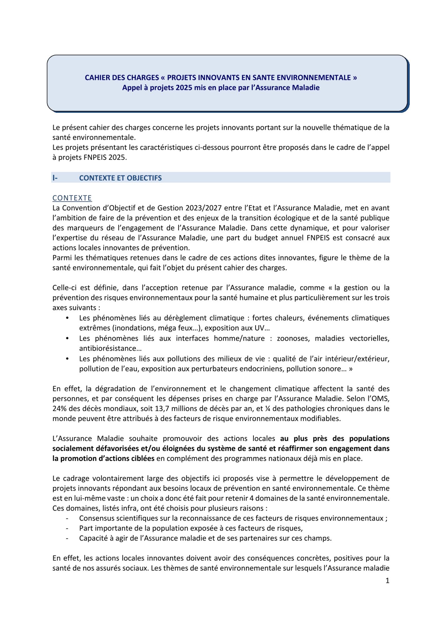 Cahier des charges Santé environnementale