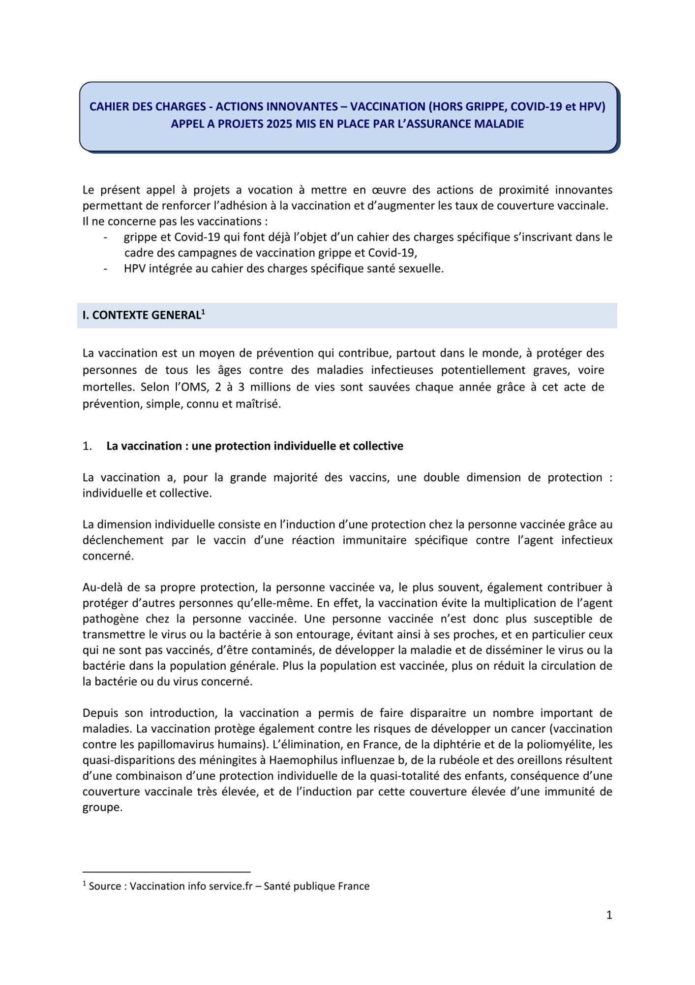 Cet appel à projets 2025 de l'Assurance Maladie a vocation à mettre en oeuvre des actions de proximité permettant de mettre en oeuvre des actions innovantes permettant de renforcer l'adhésion à la vaccination et d'augmenter le taux de couverture vaccinal. Il vise les publics cibles les moins vaccinés et/ou dans les territoires ayant une insuffisante couverture vaccinale, en ciblant les populations socialement défavorisées et éloignées du système de santé.