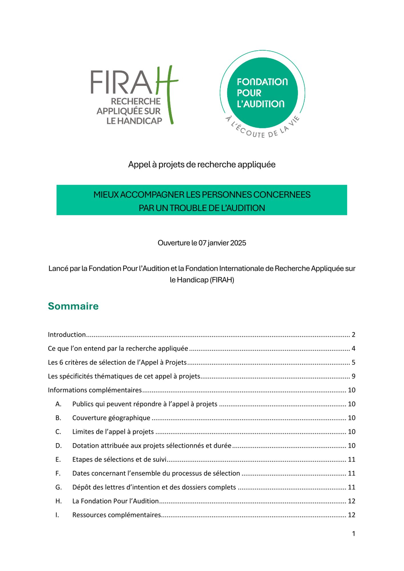 - L'appel à projets "Mieux accompagner les personnes concernées par un trouble de l'audition" en partenariat avec la Fondation pour l'Audition.