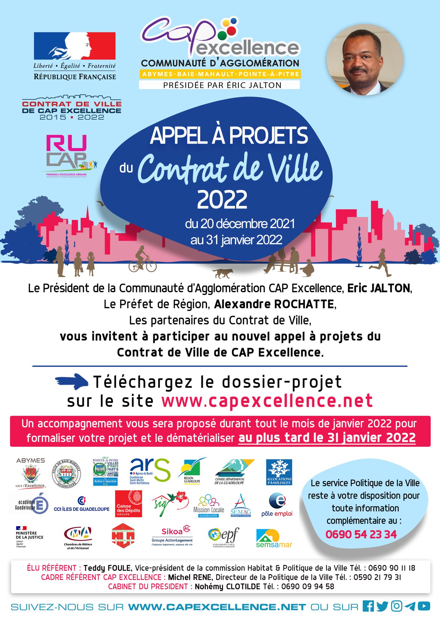 Dans le cadre du contrat de ville 2022, la communauté d'agglomération Cap Excellence propose aux associations de proximité un appel à projet relatif aux quartiers prioritaires ou quartiers de veille active sur le territoire des Abymes, de Pointe-à-Pitre et de Baie-Mahault.