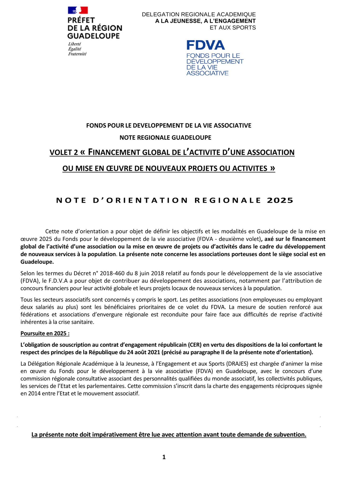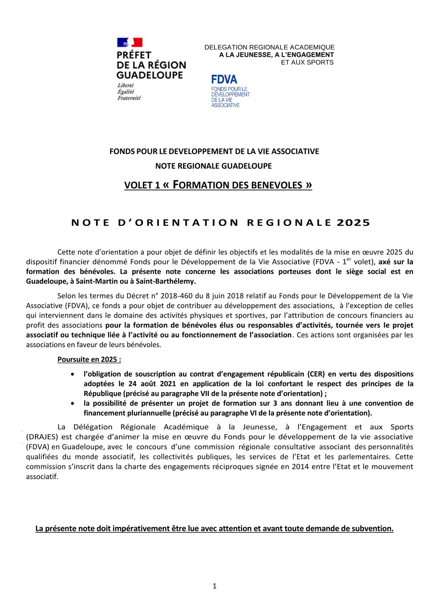 A noter que préalablement il est nécessaire de lire la note d'orientation 2025 avec attention, préalablement avant toute demande de subvention.