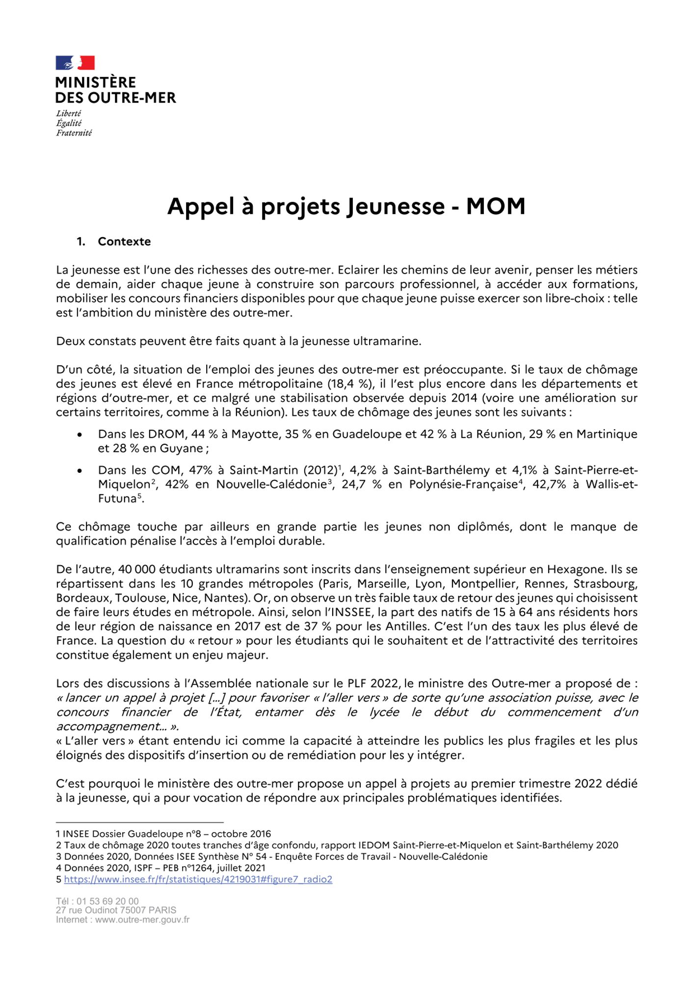 - Le premier volet sera ciblé sur l'accompagnement des jeunes au sein des territoires ultramarins afin de renforcer les outils en faveur de leur insertion sociale et de leur capacité d’agir.