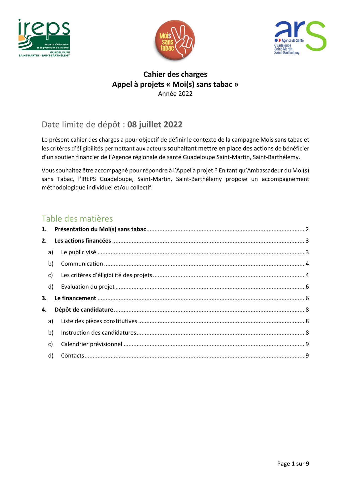 - Consultez le cahier des charges et l'ensemble des pièces de l'appel à projets en téléchargement. Tout dépôt de dossier doit se faire au moyen de la fiche action présentée en annexe 1 accompagnée des pièces constitutives et doit être envoyé par mail à l’Ambassadeur à l’adresse suivante au plus tard le 08 juillet 2022 : mathilde.champare@ireps.gp