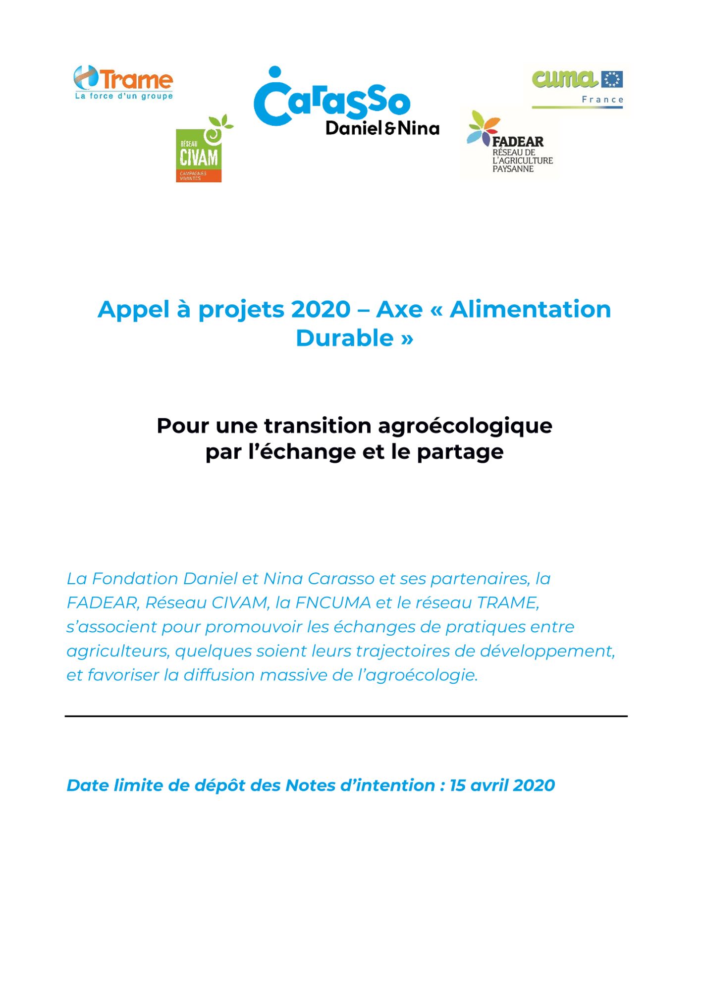 Attention, les candidatures s’effectuent exclusivement en ligne sur la plateforme de la Fondation Daniel et Nina Carasso dédiée au dépôt de projets en ligne: https://projets.fondationcarasso.org/fr/