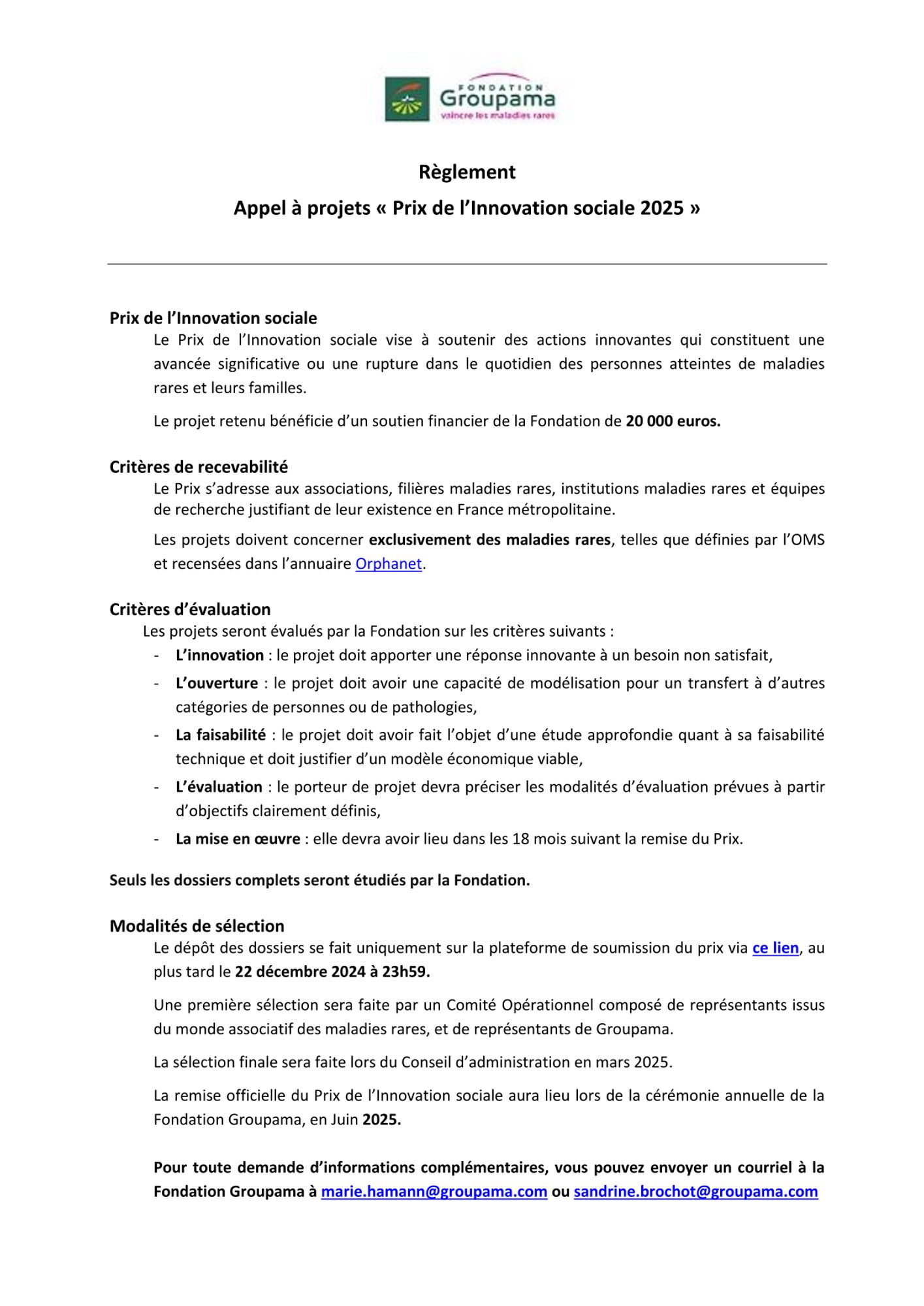 2La procédure est dématérialisée, le dépôt des dossiers se fait au plus tard le 22/12/2024 uniquement sur la plateforme dédiée de la Fondation Groupama