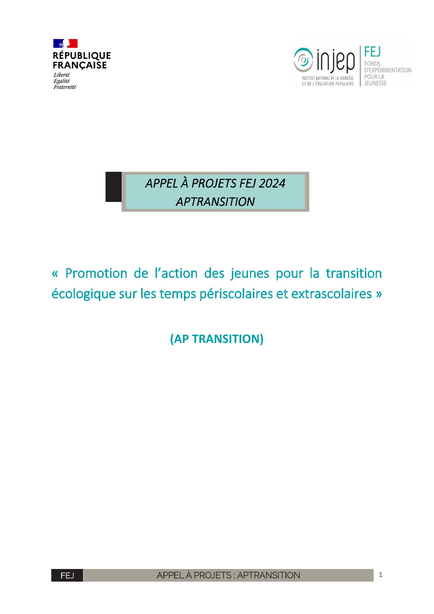 Promotion des jeunes pour la transition écologique sur les temps scolaires et extrascolaires (APTRANSITION) - INJEP
