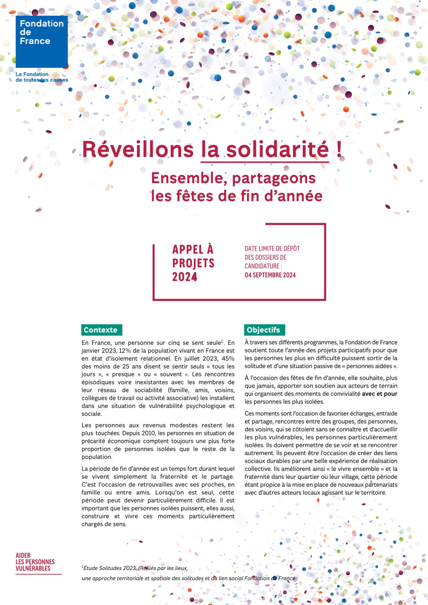 L’appel à projets « Réveillons la solidarité ! » est ouvert jusqu'au 04 septembre 2024