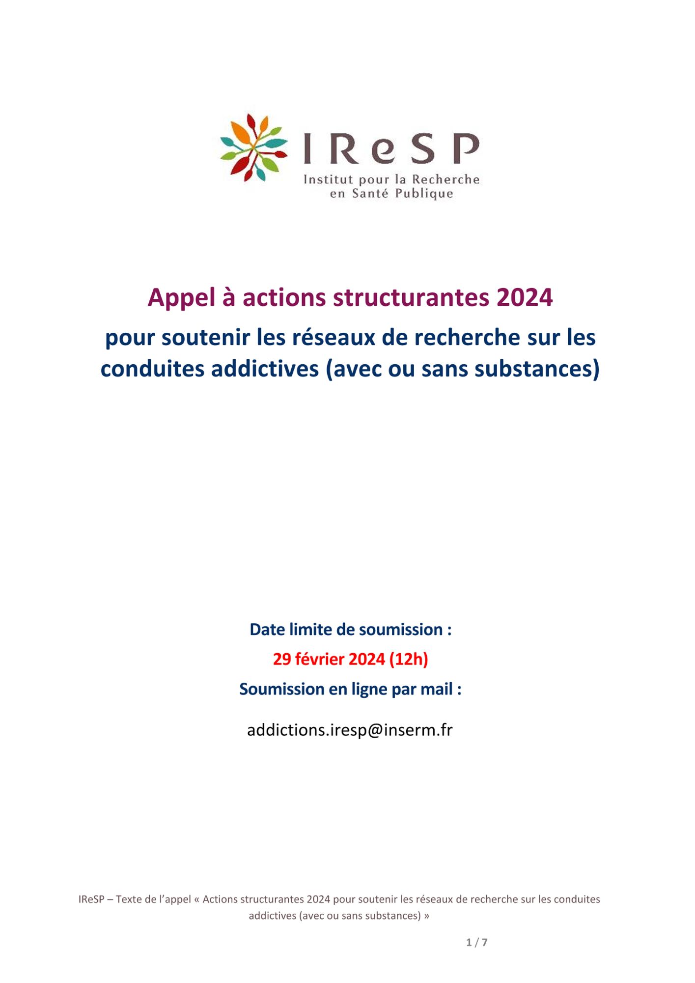 Plus de détails concernant cet appel à projets sur le site de l'IReSP et d ans le cahier des charges de l'Appel à projets 2024
