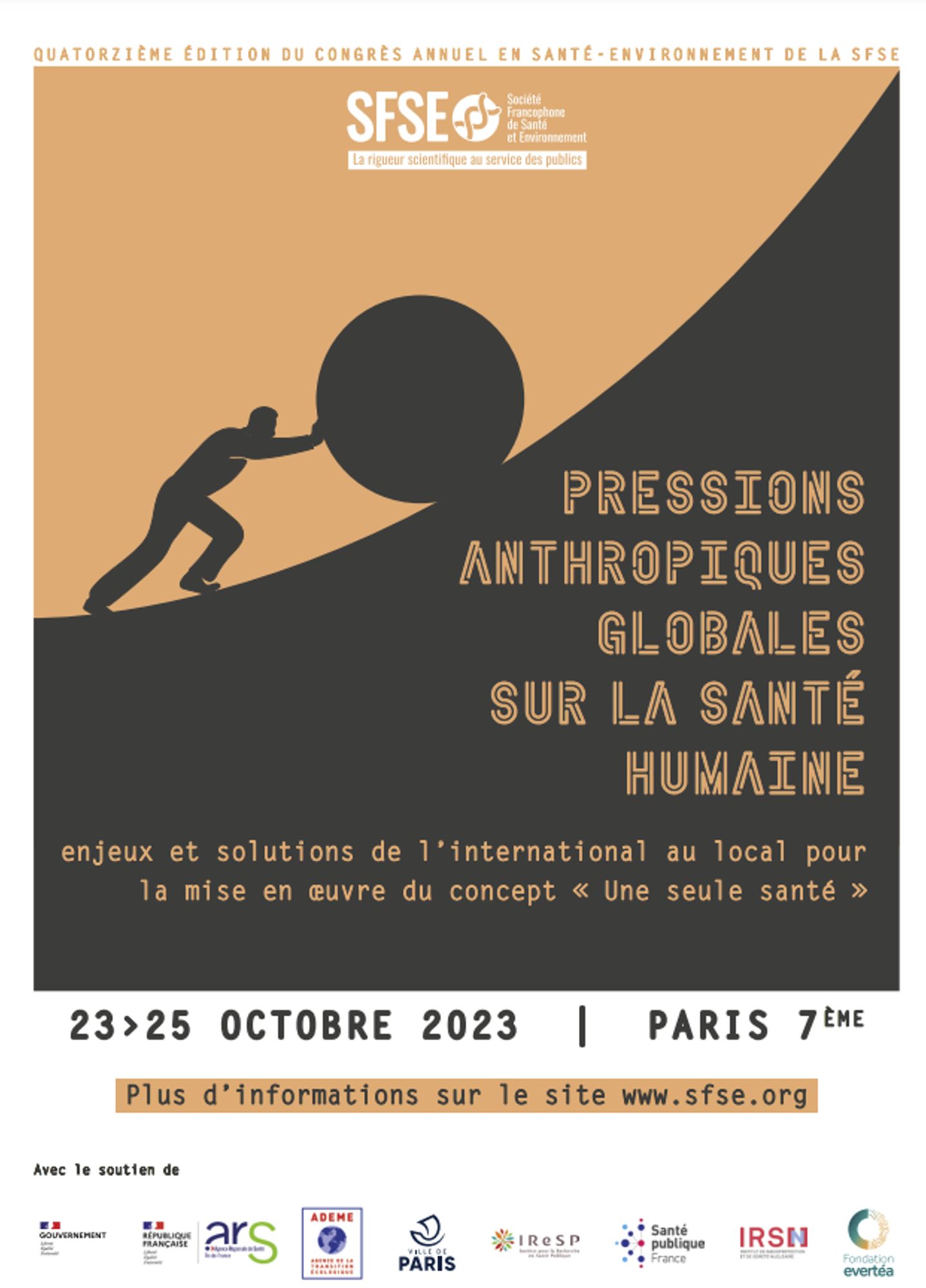 Congrès SFSE 2023 - PRESSIONS ANTHROPIQUES GLOBALES SUR LA SANTÉ HUMAINE – Enjeux et solutions de l’international au local pour la mise en œuvre du concept « Une seule santé »