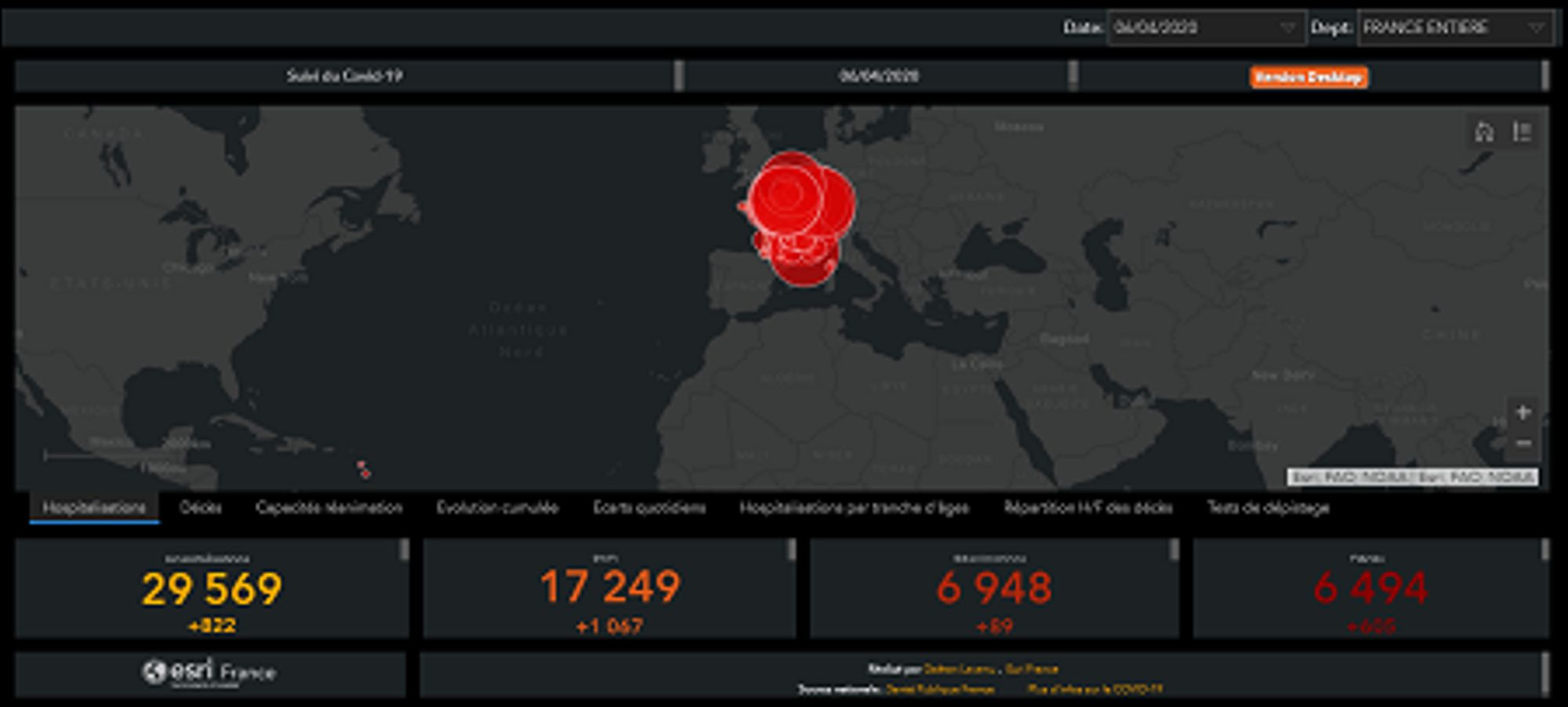 Carte interactive France et territoires et départements d'outre-mer sur la pandémie à COVID-19. Mise à jour quotidiennement.