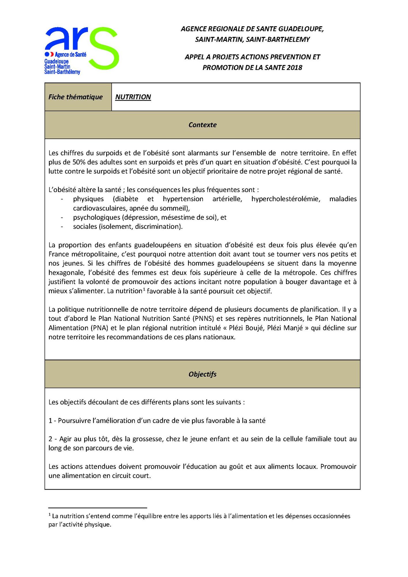 Fiche thématique Nutrition - (ARS) de Guadeloupe
