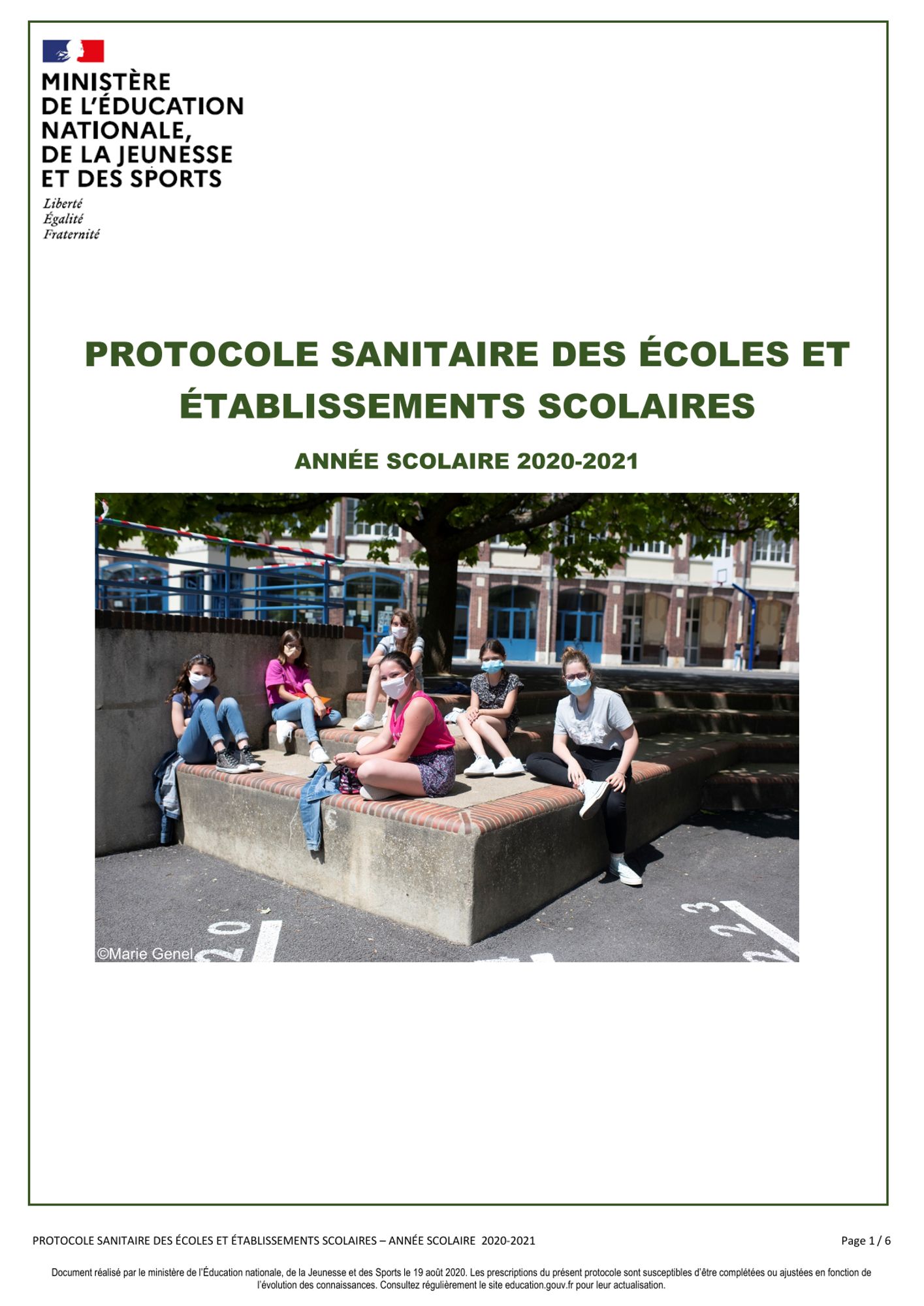 Un guide relatif au fonctionnement des écoles et des établissements scolaires dans le contexte spécifique de la Covid-19 a été publié par le ministère de l'éducation nationale.