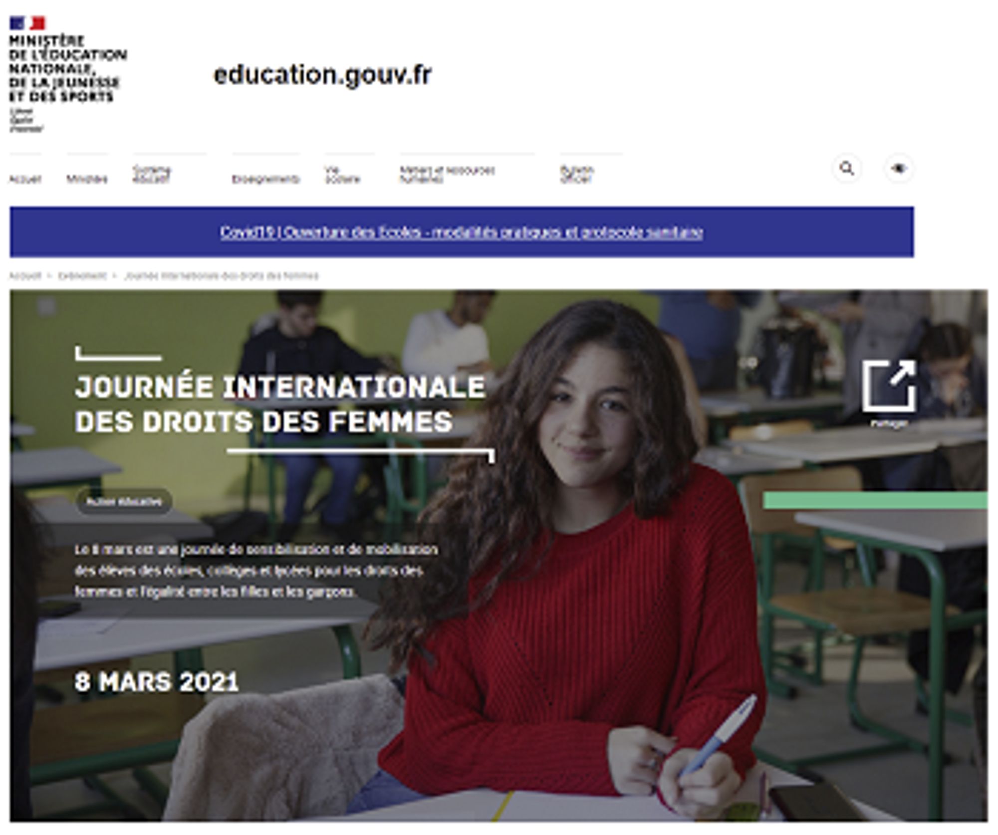 Le 8 mars est une journée de sensibilisation et de mobilisation des élèves des écoles, collèges et lycées pour les droits des femmes et l'égalité entre les filles et les garçons.