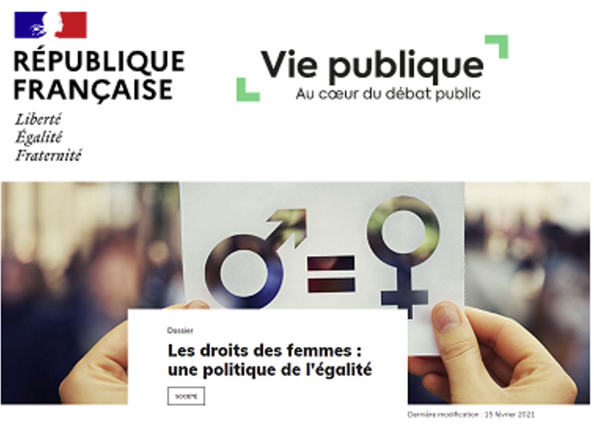 Les droits des femmes: une politique de l'égalité. Vie-publique.fr (01/03/2022)