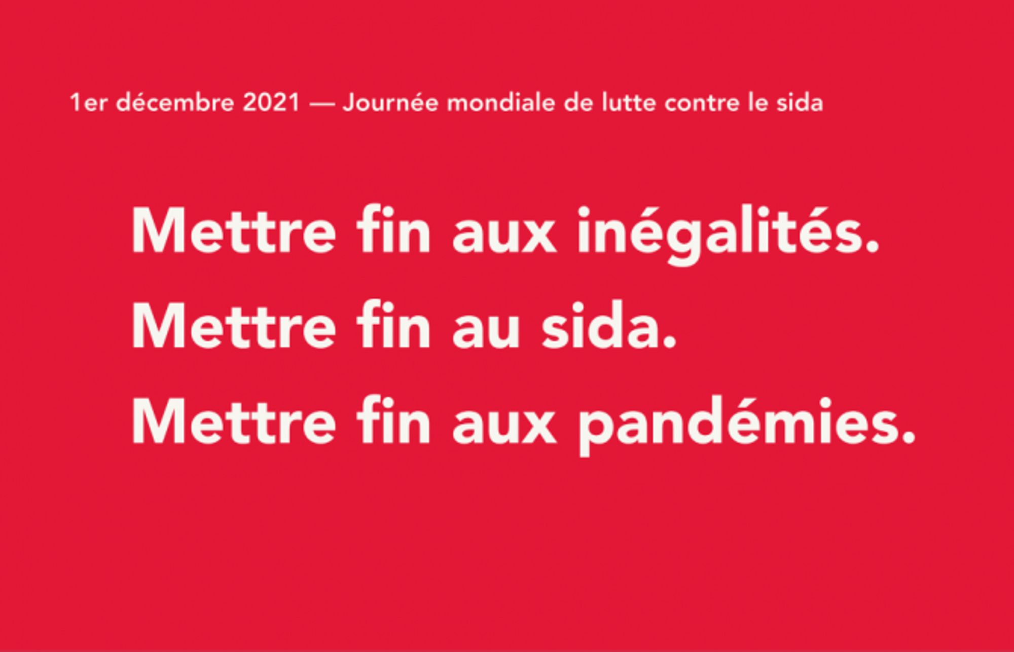 Le thème de la la journée mondiale est comme l'an dernier: "Mettre fin aux inégalités. Mettre fin au sida. Mettre fin aux épidémies"