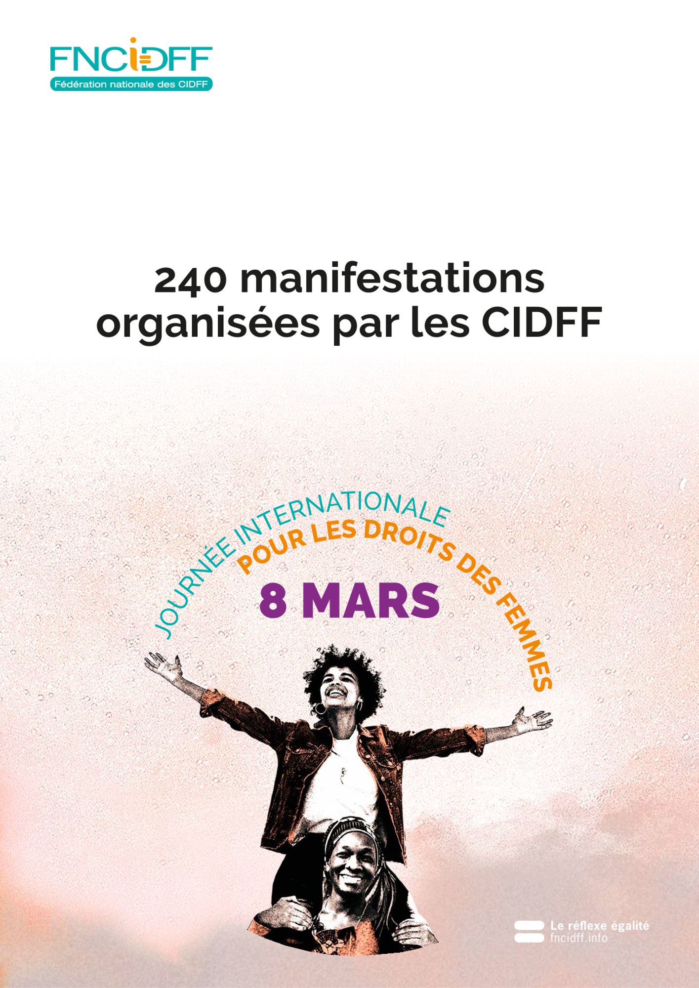 Pour le 8 mars cette année, les CIDFF ont mis en place 240 actions, avec des évènements tels que des conférences, spectacles, forums, ciné-débats, marches, expositions, etc sur des thématiques aussi variées que la lutte contre les violences, l’accès au numérique, l’éducation et la citoyenneté, l’accès à l’emploi, etc.
