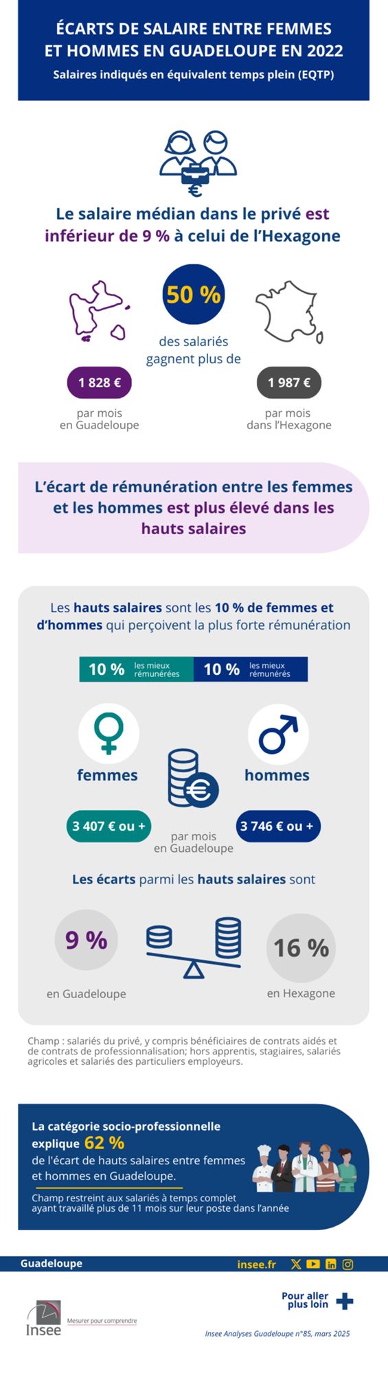 Ecarts salariaux entre hommes et femmes et catégorie socio-professionnelle en Guadeloupe en 2022 INSEE Analyse Guadeloupe n° 85 - 07/03/2025