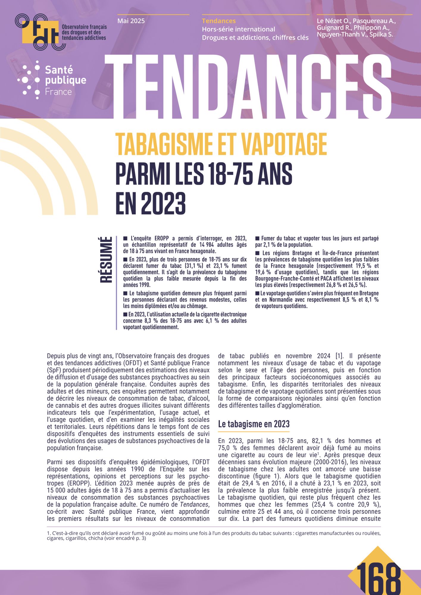 La France compte aujourd’hui près de 11 millions de fumeurs quotidiens, faisant de la consommation de tabac la première cause de mortalité évitable. Il reste important de poursuivre les actions de prévention liées au tabagisme et d’inciter les fumeurs, notamment les moins favorisés sur le plan socio-économique et les moins diplômés, à arrêter de fumer.