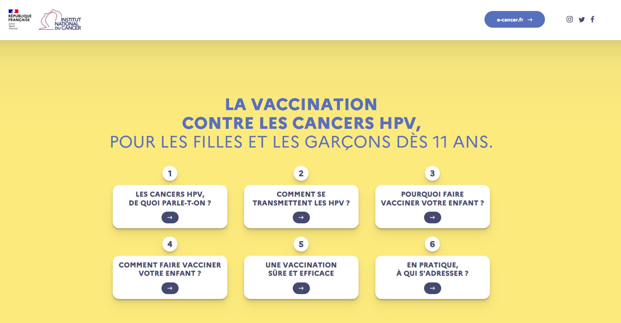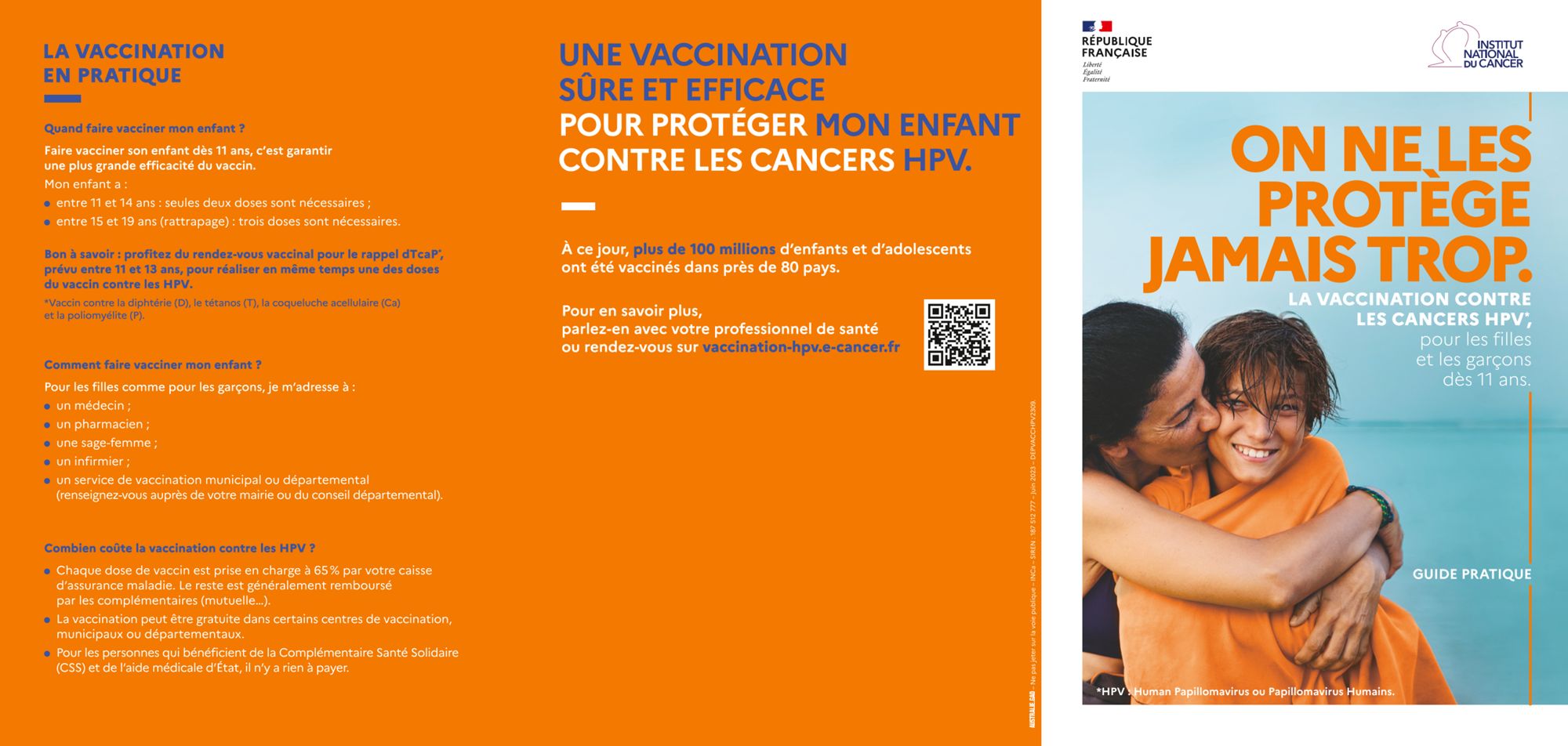 Dépliant d'information sur la vaccination contre les cancers HPV (Papillomavirus Humains) pour les filles et les garçons dès 11 ans.