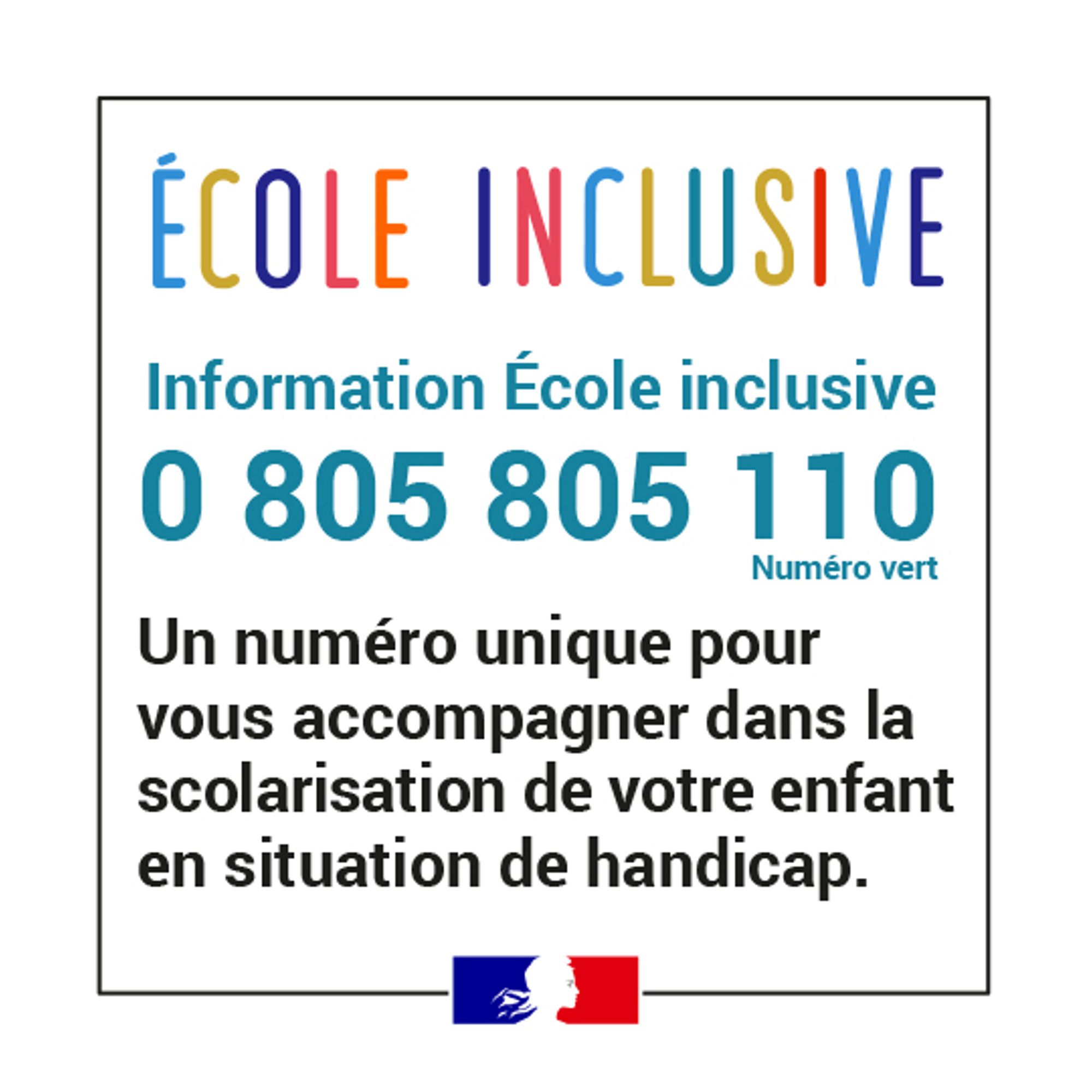 Pour informer et accompagner les familles, un numéro vert national, le 0805 805 110 (ou 0 800 730 123, accessible aux personnes malentendantes), dirige vers la cellule départementale ou nationale « Aide handicap école » par formulaire.