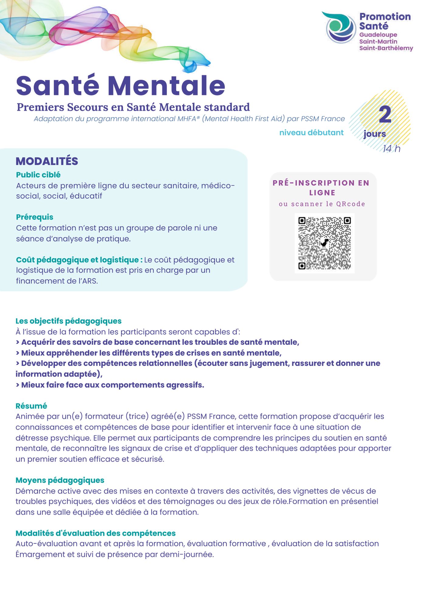 Animée par un(e) formateur(trice) agréé(e) PSSM France, cette formation propose d’acquérir les connaissances et compétences de base pour identifier et intervenir face à une situation de détresse psychique. Elle permet aux participants de comprendre les principes du soutien en santé mentale, de reconnaître les signaux de crise et d’appliquer des techniques adaptées pour apporter un premier soutien efficace et sécurisé.