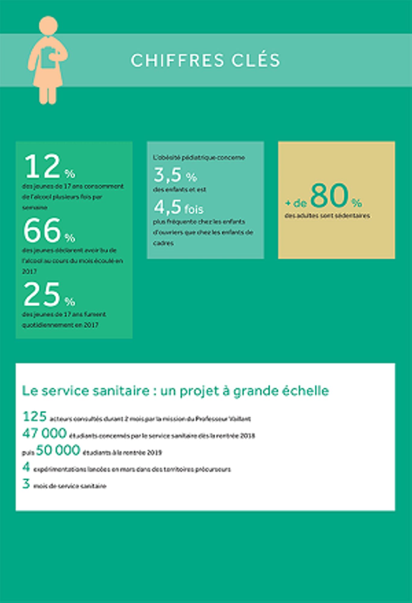 Mettre en place un service sanitaire pour tous les étudiants en santé intégré dans les maquettes pédagogiques constitue un engagement du Président de la République. Il s'inscrit dans le cadre de la Stratégie nationale de santé (2018-2022) dont le premier axe vise la prévention et la promotion des comportements favorables à la santé, et le deuxième axe la lutte contre les inégalités territoriales. Initier tous les futurs professionnels de santé aux enjeux de la prévention primaire et permettre la réalisation d'actions concrètes de prévention primaire par les étudiants en santé a donc d'amblée constituée un des objectifs prioritaires de la mise en oeuvre du service sanitaire (...)