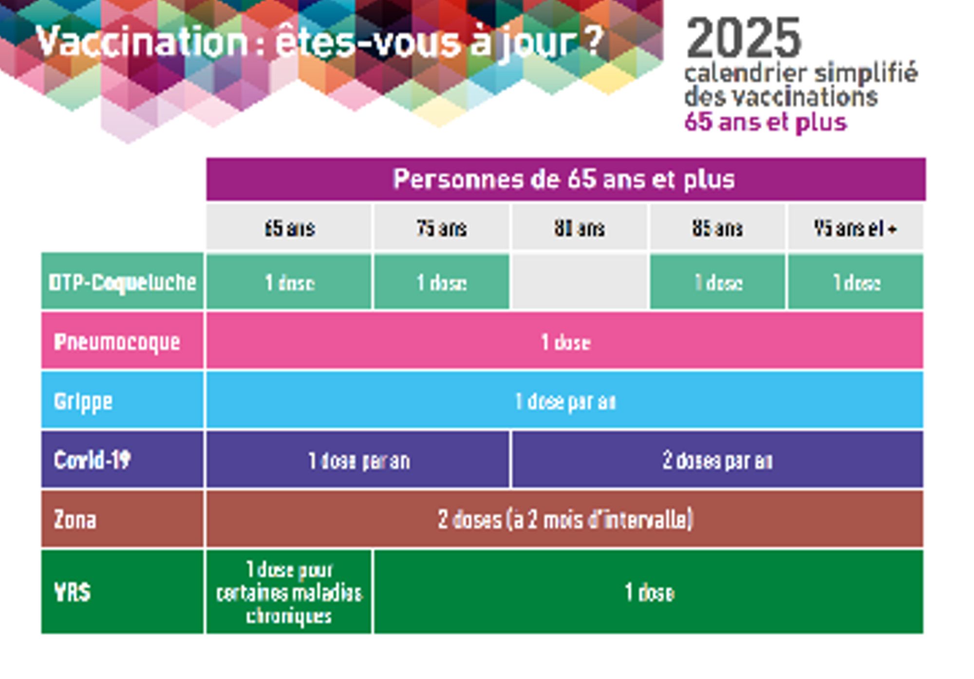 Affiche les vaccins à tous les âges : calendrier 2025 ;