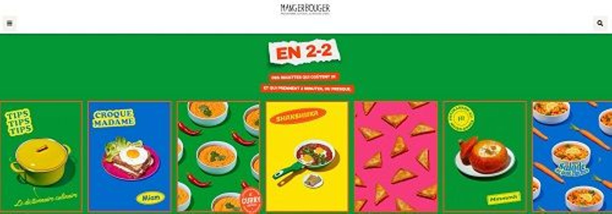 - six recettes gourmandes, saines et faciles à réaliser sont diffusées sur le site mangerbouger.fr/recettes-en-2-2, et sur son et sur son compte Instagram @mangerbougerfr avec au menu : croque madame, curry aux lentilles corail, potimarron au micro-ondes, shakshuka, samoussas au thon et à la tomate et salade de carottes et pois chiches.