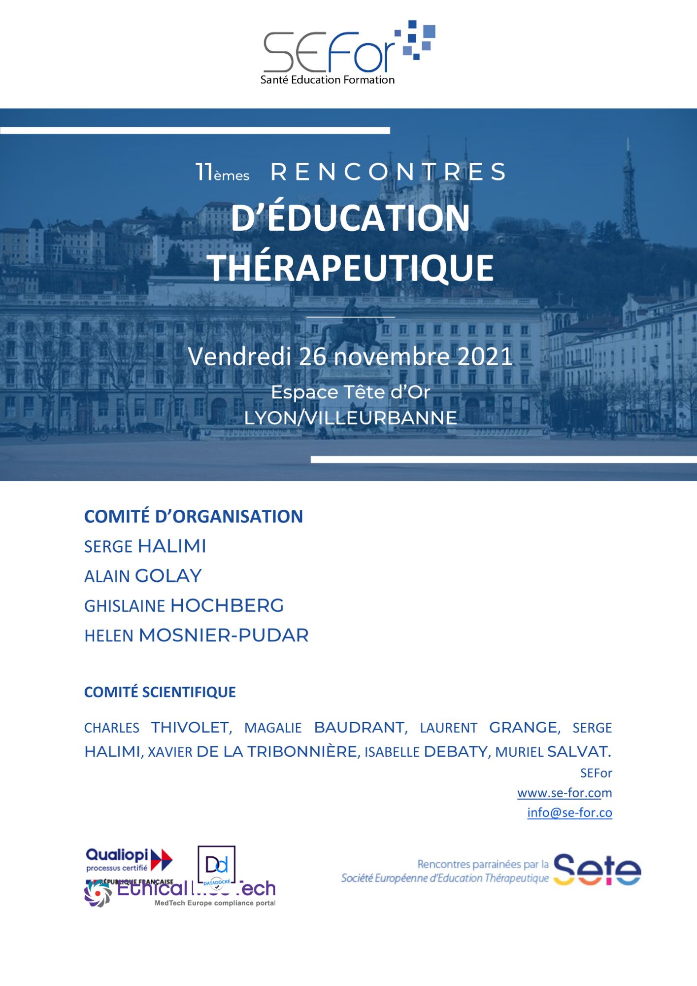 La société SEFor (Santé Education formation) propose ces Rencontres Régionales d'ETP (Education Thérapeutique du Patient).