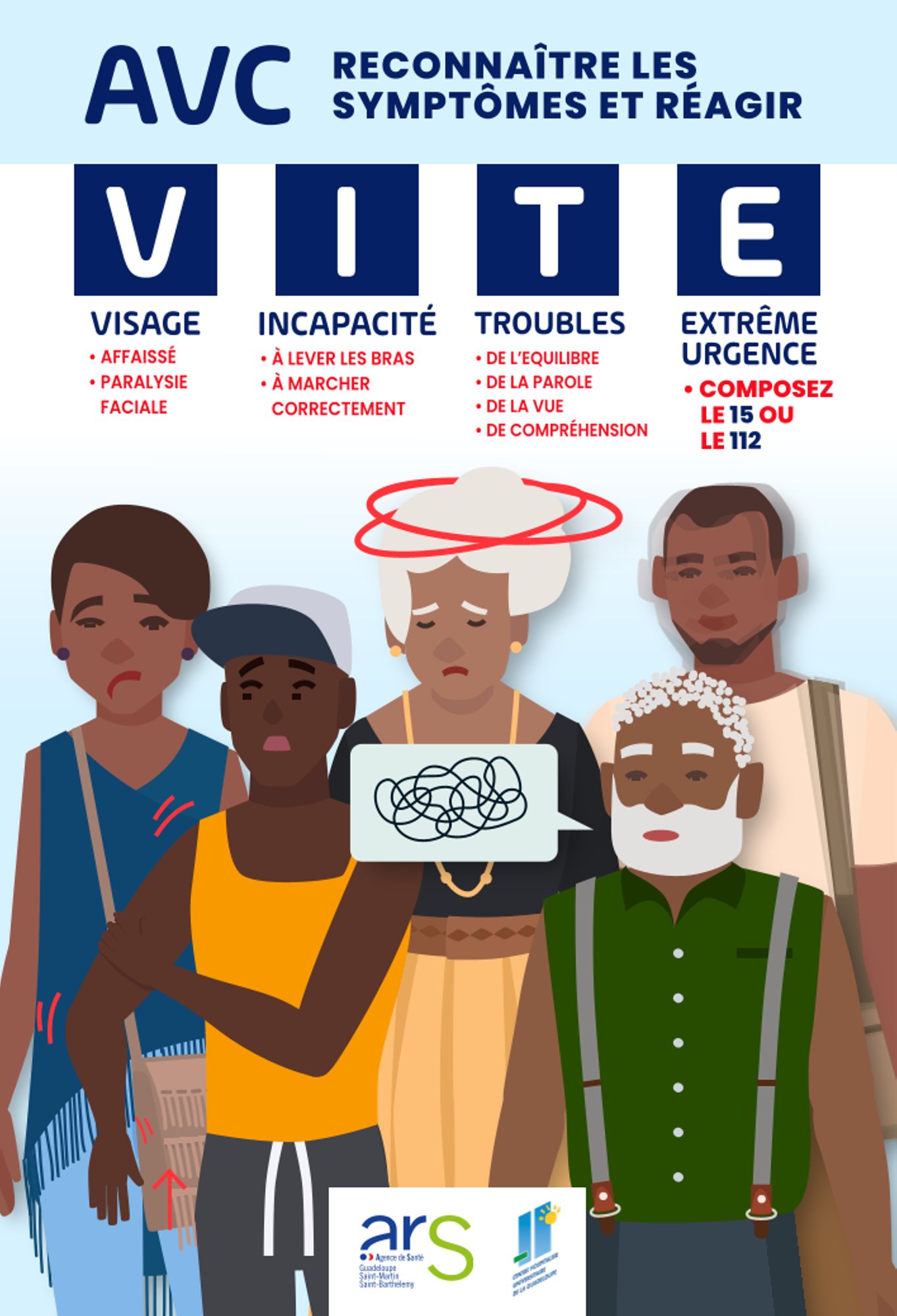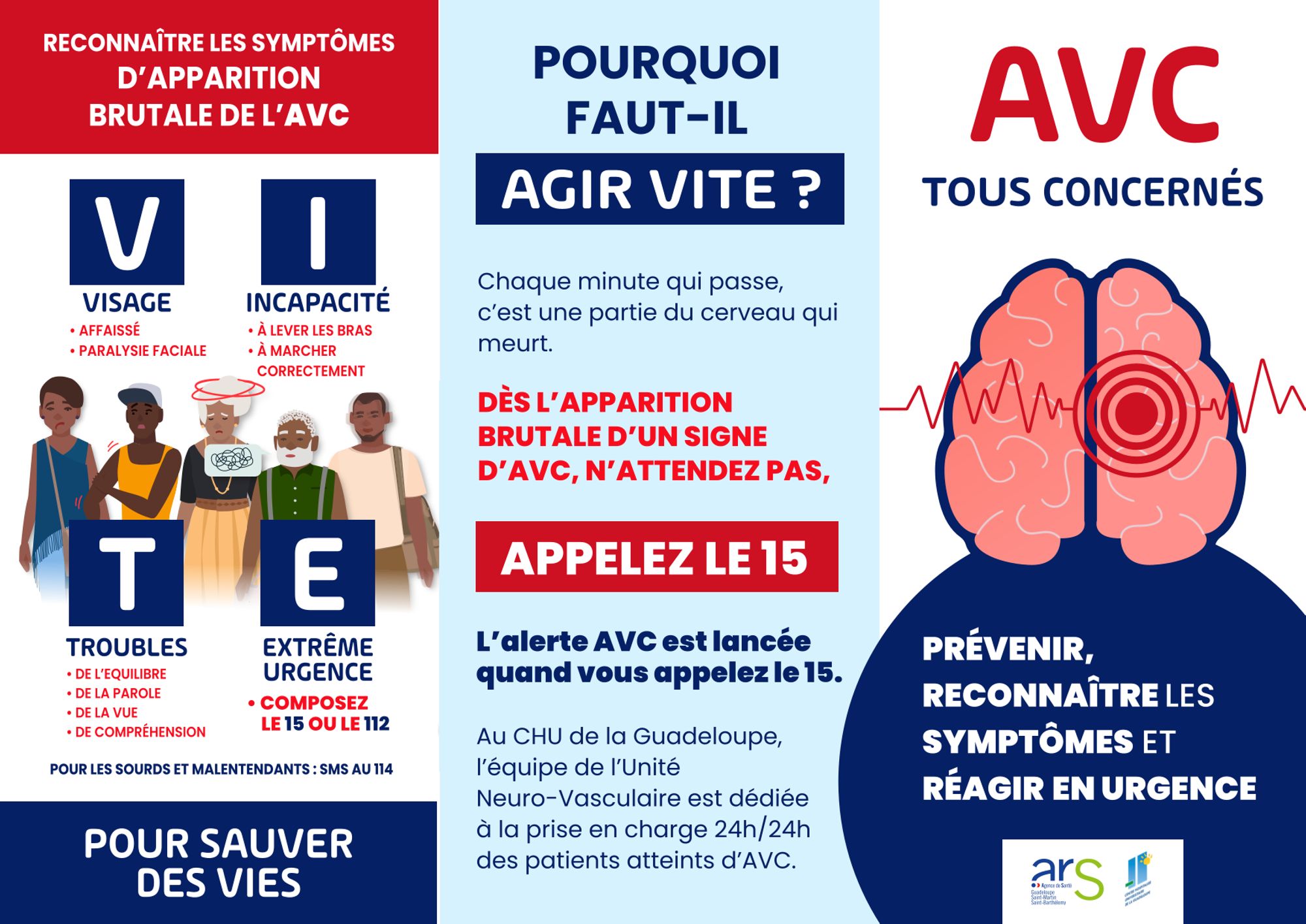 AVC - Tous concernés. Reconnaître les symptômes et réagir - Campagne prévention ARS / CHU - UNV Guadeloupe