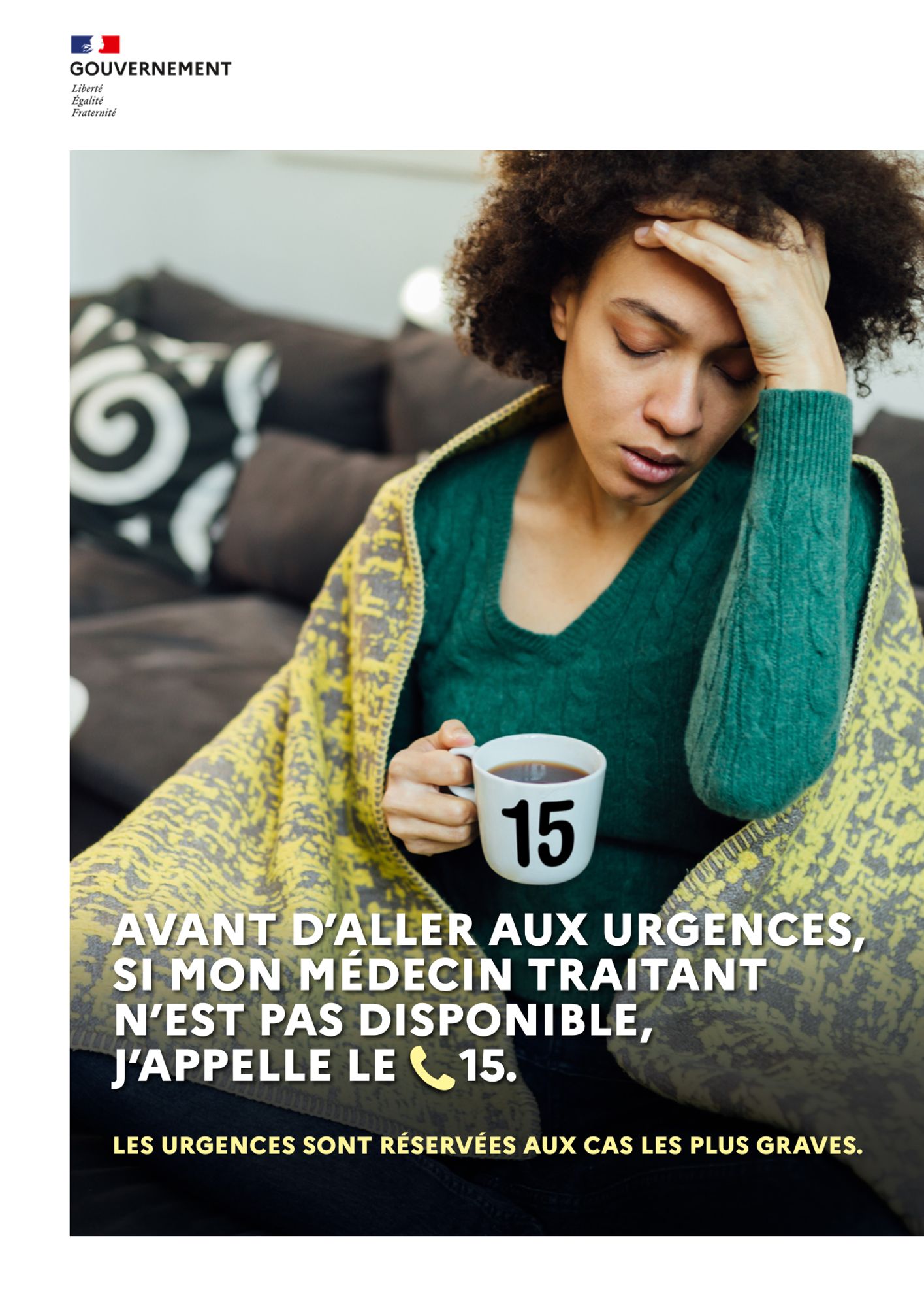 Reposant en particulier sur trois affiches largement diffusées sur internet et dans « la vraie vie » et de spots radios, elle suggère : « Avant d’aller aux urgences, si mon médecin traitant n’est pas disponible, j’appelle le 15. Les urgences sont réservées aux cas les plus graves ».