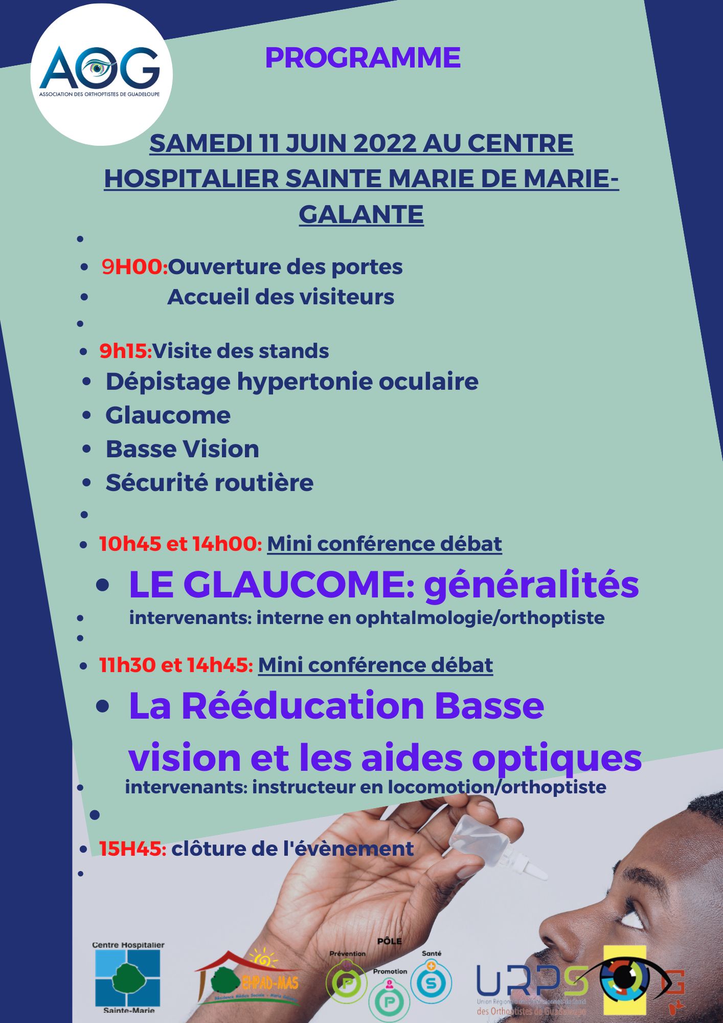 Dans le cadre de la journée Mondiale de l'Orthoptie, l'Association des Orthoptistes de Guadeloupe organise une journée axée sur le dépistage du Glaucome