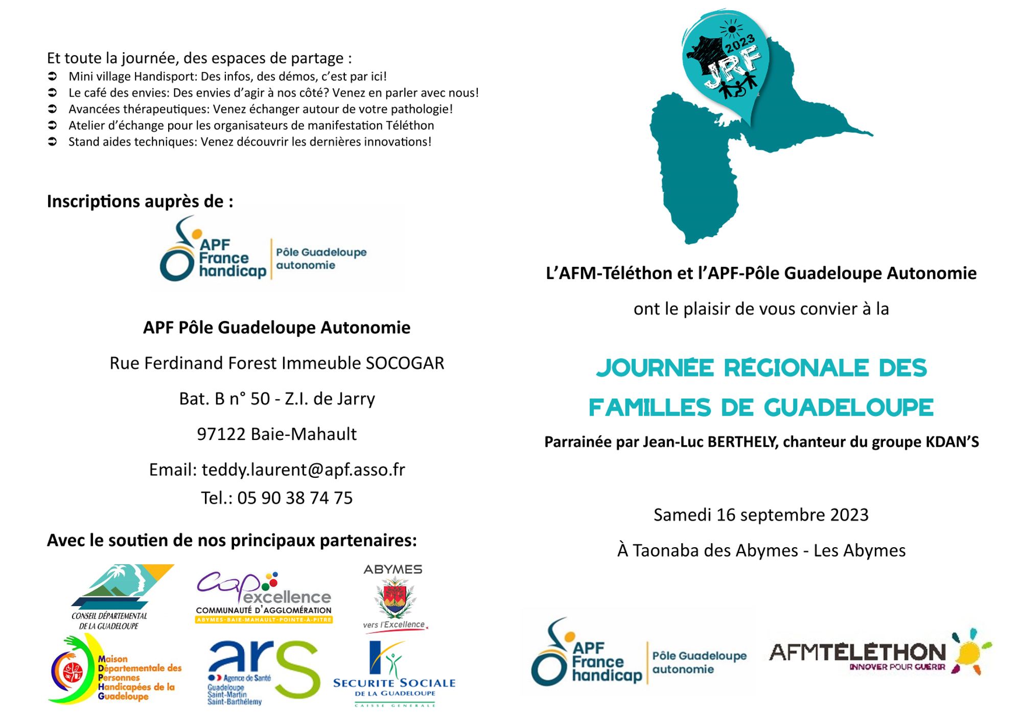 L'APF France Handicap Pôle Guadeloupe Autonomie en collaboration avec l'AFM Téléthon organise la 5 ème édition de la journée régionale des familles :