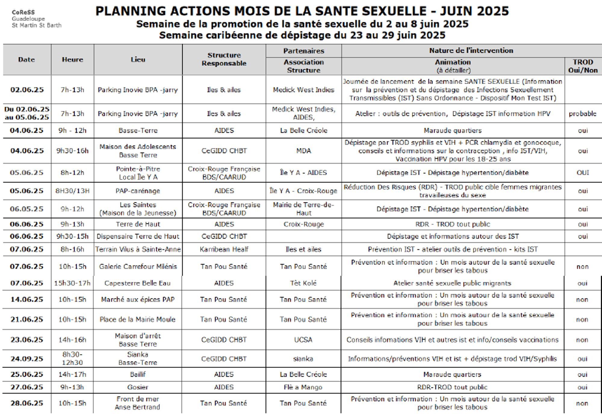 - La semaine caribéenne de dépistage du VIH (du 23 au 29 juin 2025)