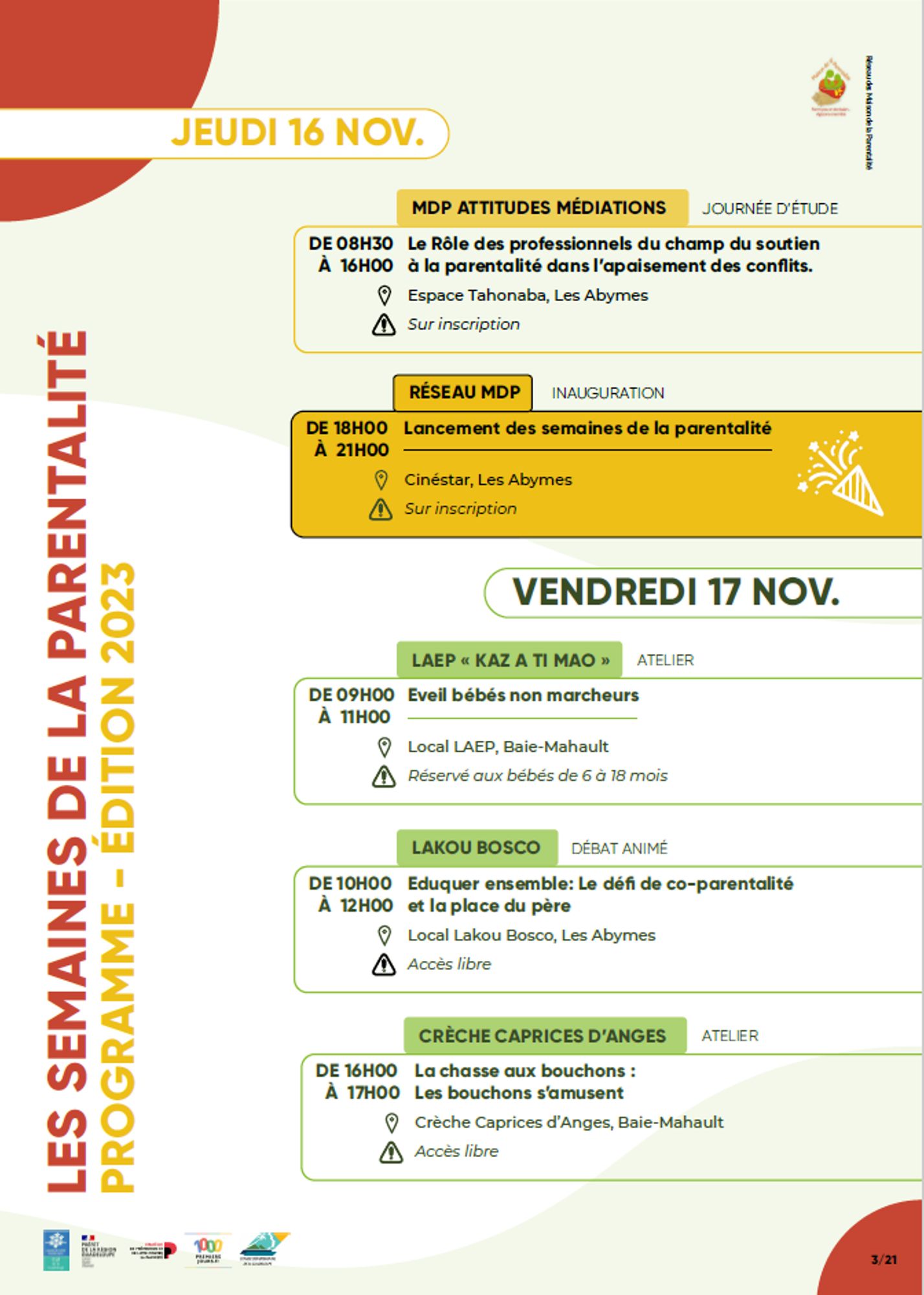 Conférence de lancement des semaines de la parentalité : Jeudi 16 novembre 2023 de 18h00 à 21h00 - Lieu : Cinéstar des Abymes