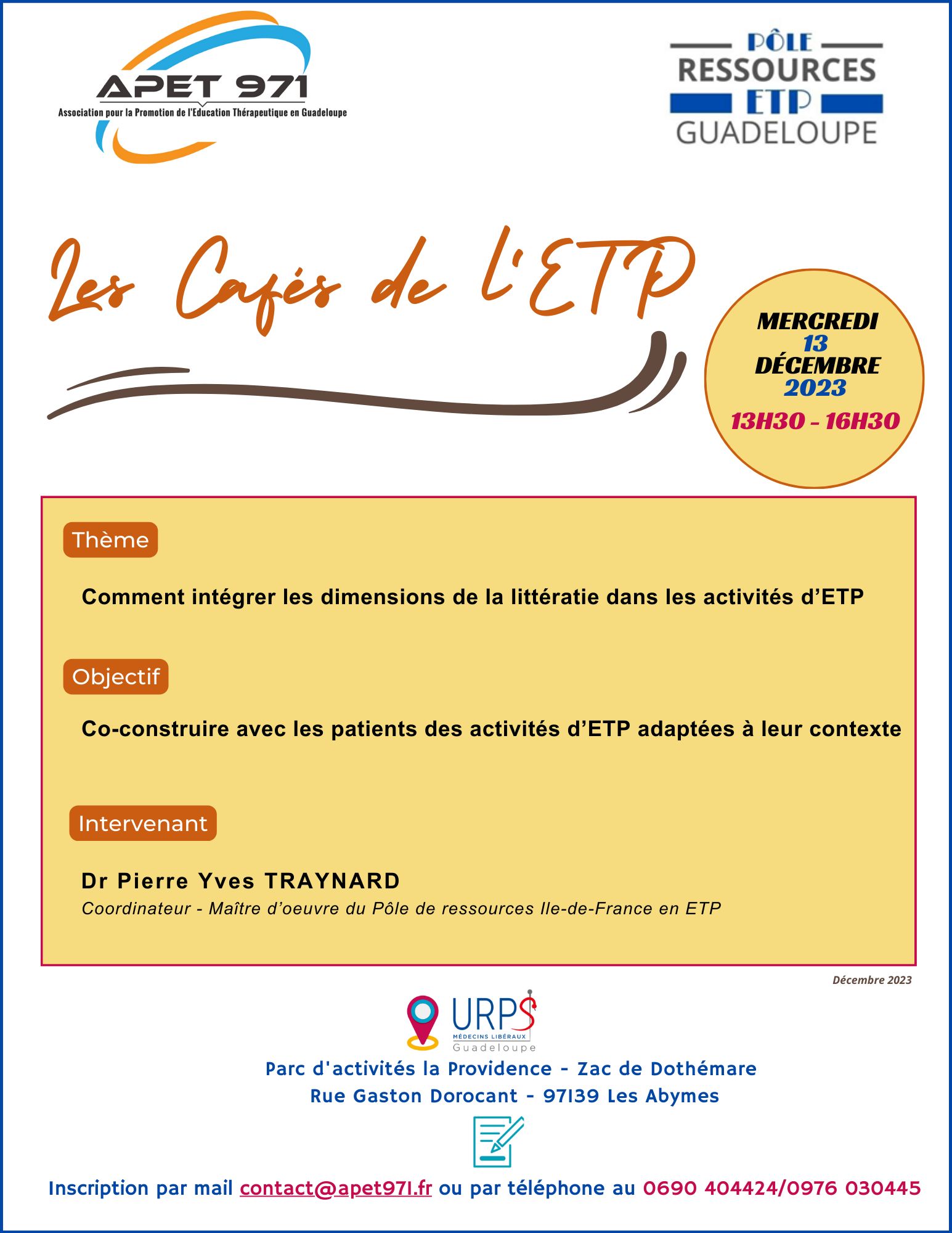 les Cafés de l'ETP avec l'intervention du Dr Pierre Yves Traynard