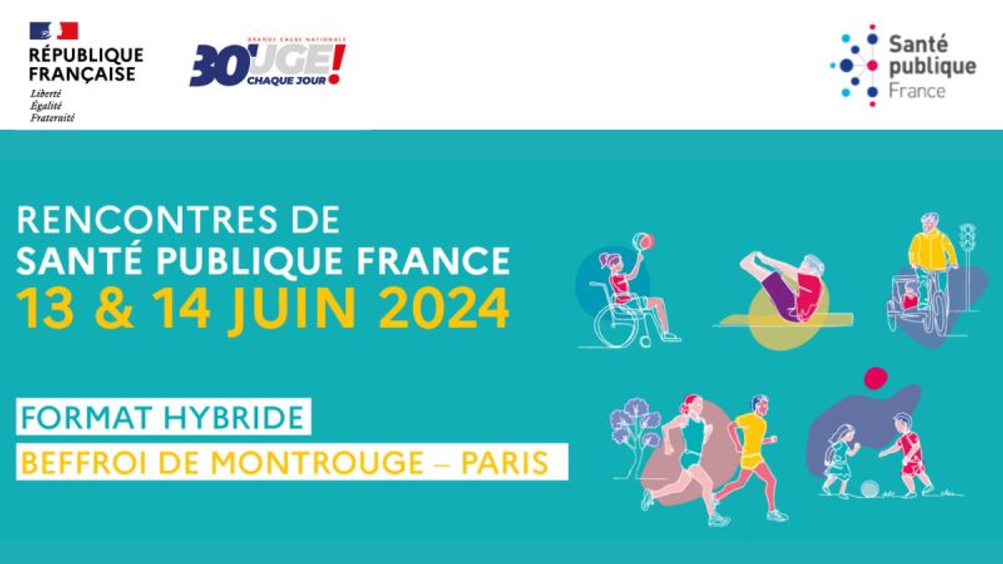 Les Rencontres de Santé publique France se tiendront en format hybride les 13 et 14 juin 2024 à Paris au Beffroi de Montrouge. Une édition qui est labellisée Grande Cause Nationale 2024 et mettra en avant la promotion de l'activité physique et sportive.